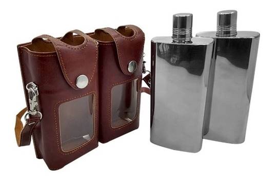 Flaska szett bőrtokban 2 db kulcstartó pohárral