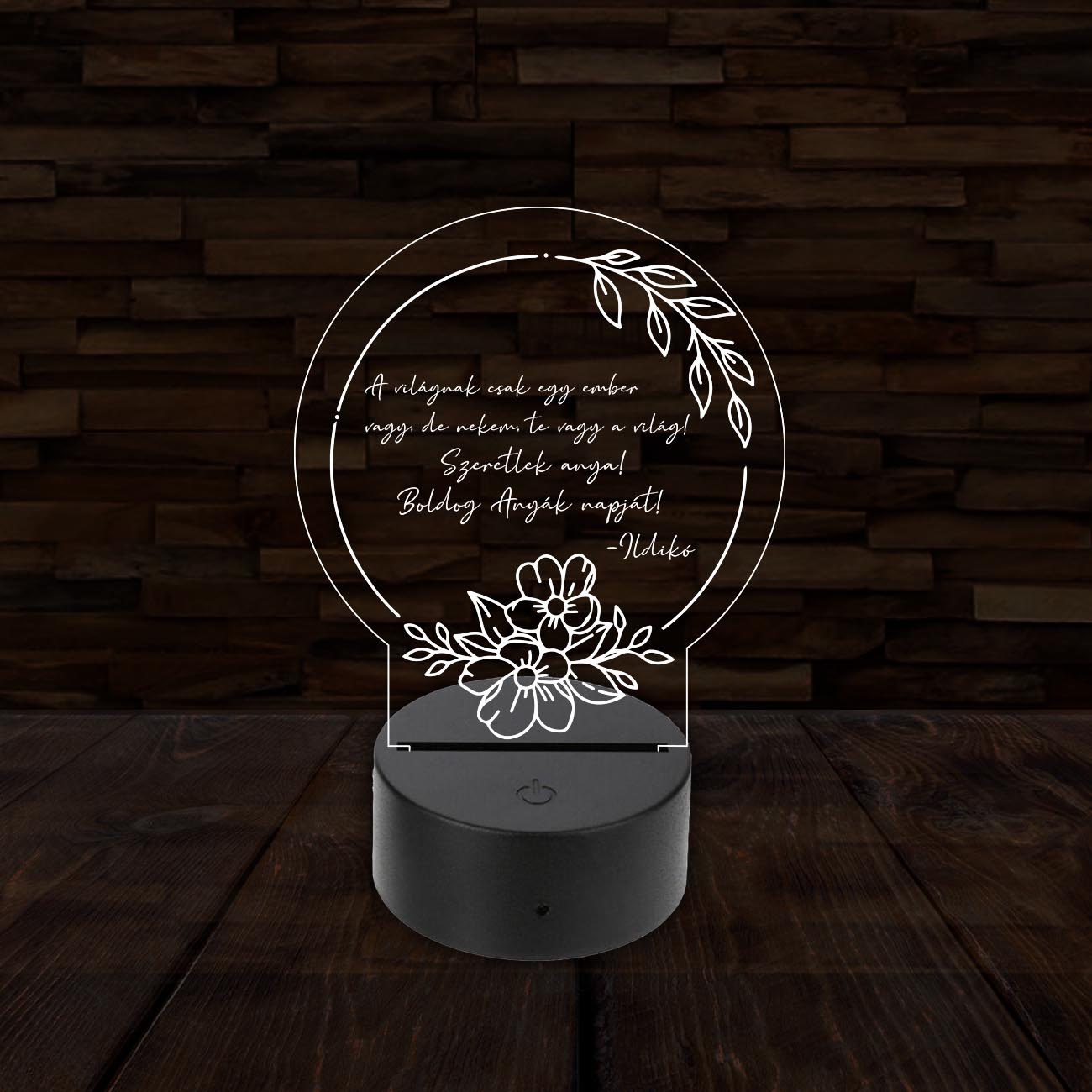 Anyaga: 4 mm akrill Mérete: 20 cm magas, 14 cm széles Tápegység: USB 5V Fényforrás színe: több színű