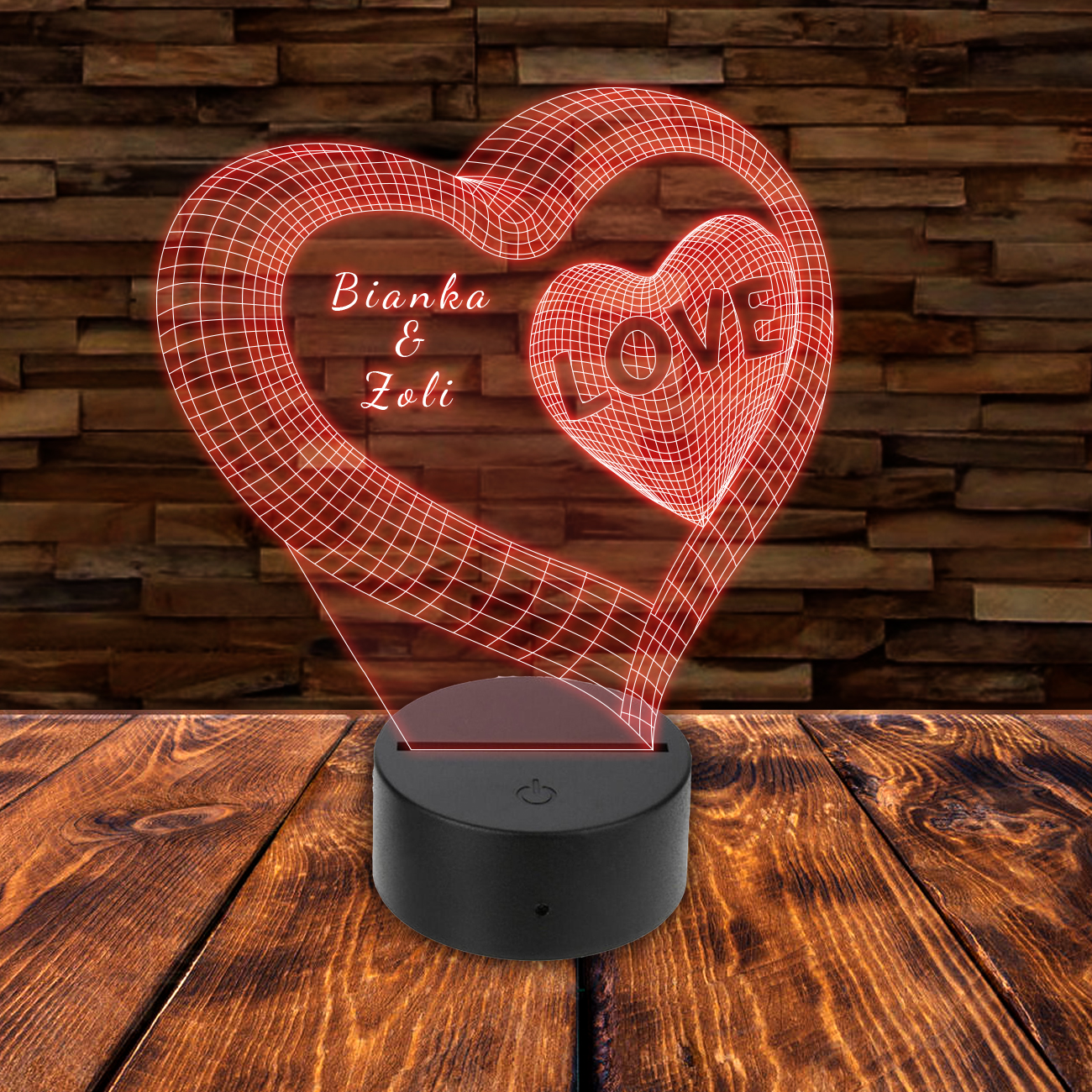 Gravírozott szív kulcstartó - Gerle pár egyedi névvel és dátummal