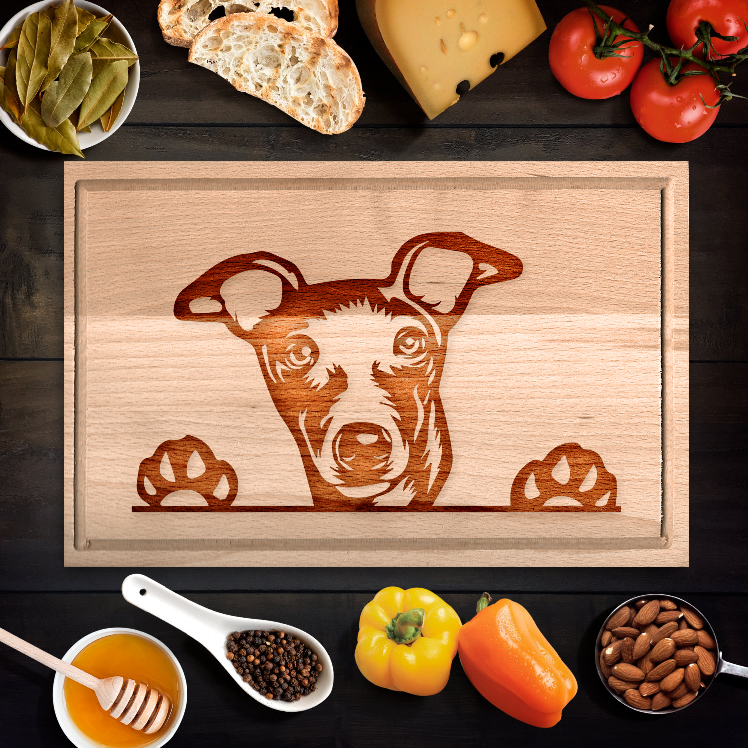 Végre egy szuper ajándékötlet a kutyás barátodnak, ismerősödnek. Szerezd meg neki ezt a kutyás (agaras) vágódeszkát, amelyik még a konyhai munka közben is eszébe juttatja a kedvencét, no meg téged, hiszen te lepted meg vele. Az agaras vágódeszka elnyűhetetlen, hosszú évekig lenyűgöző kiegészítője lesz a konyhájának. Ez az egyedi vágódeszka bükkfából készült és többféle méretben és akár nyeles változatban is kapható: válaszd ki az ideális méretet és lepd meg vele most a kutyás ismerősödet vagy akár magadat.