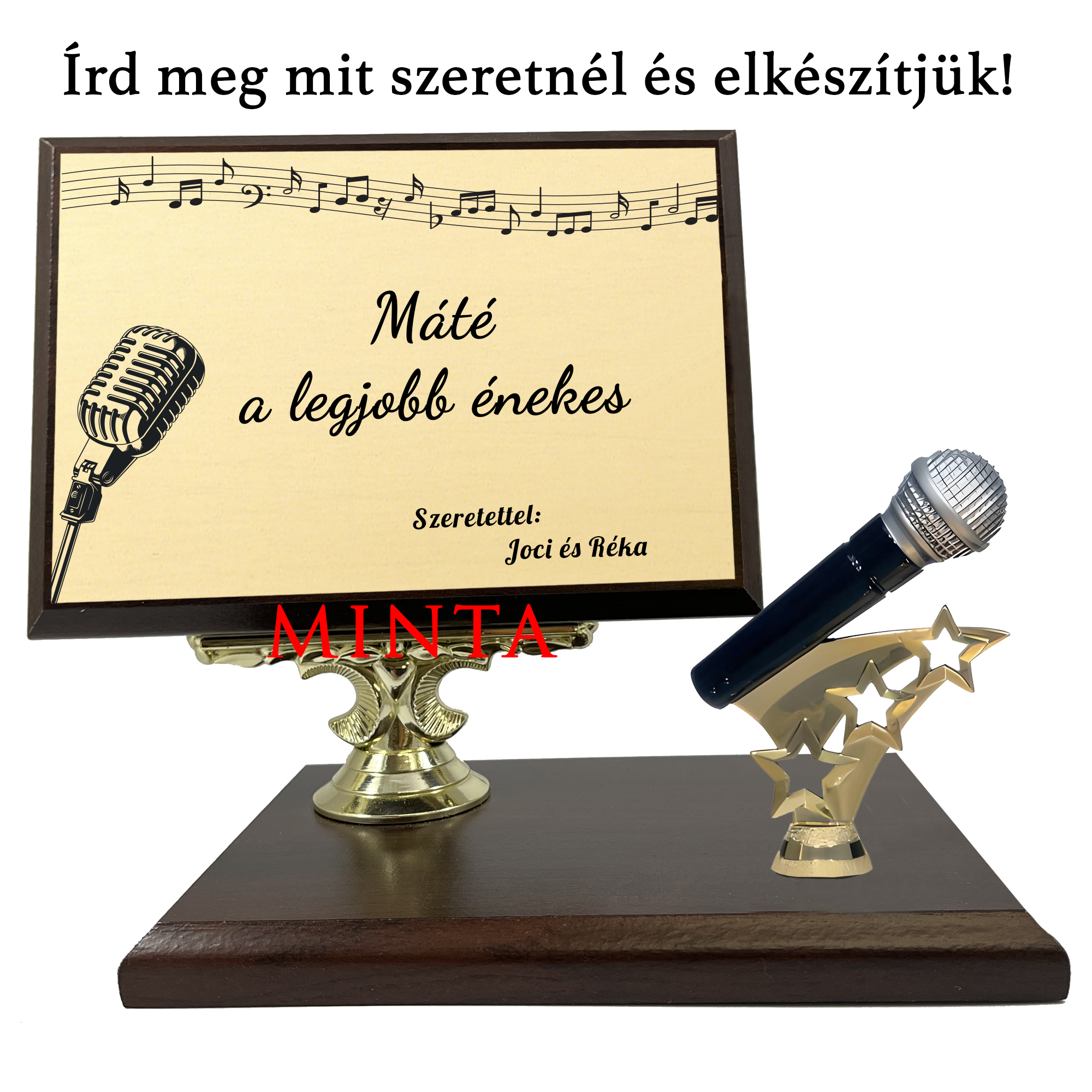 Anyaga: Fa, fém plakett, arany /fekete / szürke színű műgyanta szobor Talpazat mérete: 18 x 12,5 x 2,5 Plakett mérete: 15 x 10 cm Teljes magasság: 19,5 cm Szobor magassága: 12,5 cm |