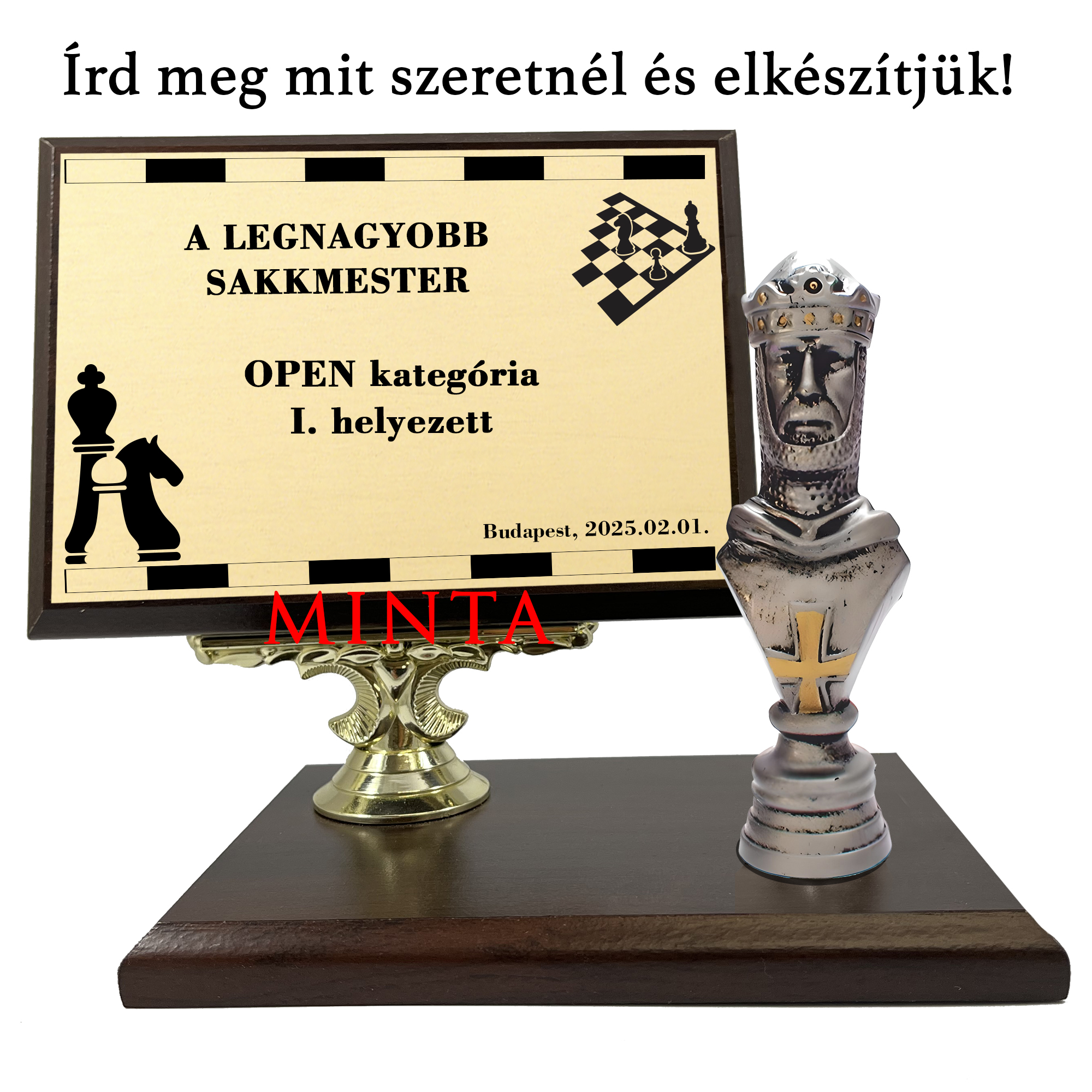 Anyaga: Fa, fém plakett, polyresin szobor Talpazat mérete: 18 x 12,5 x 2,5 Plakett mérete: 15 x 10 cm Teljes magasság: 19,5 cm Szobor magassága: 14 cm |