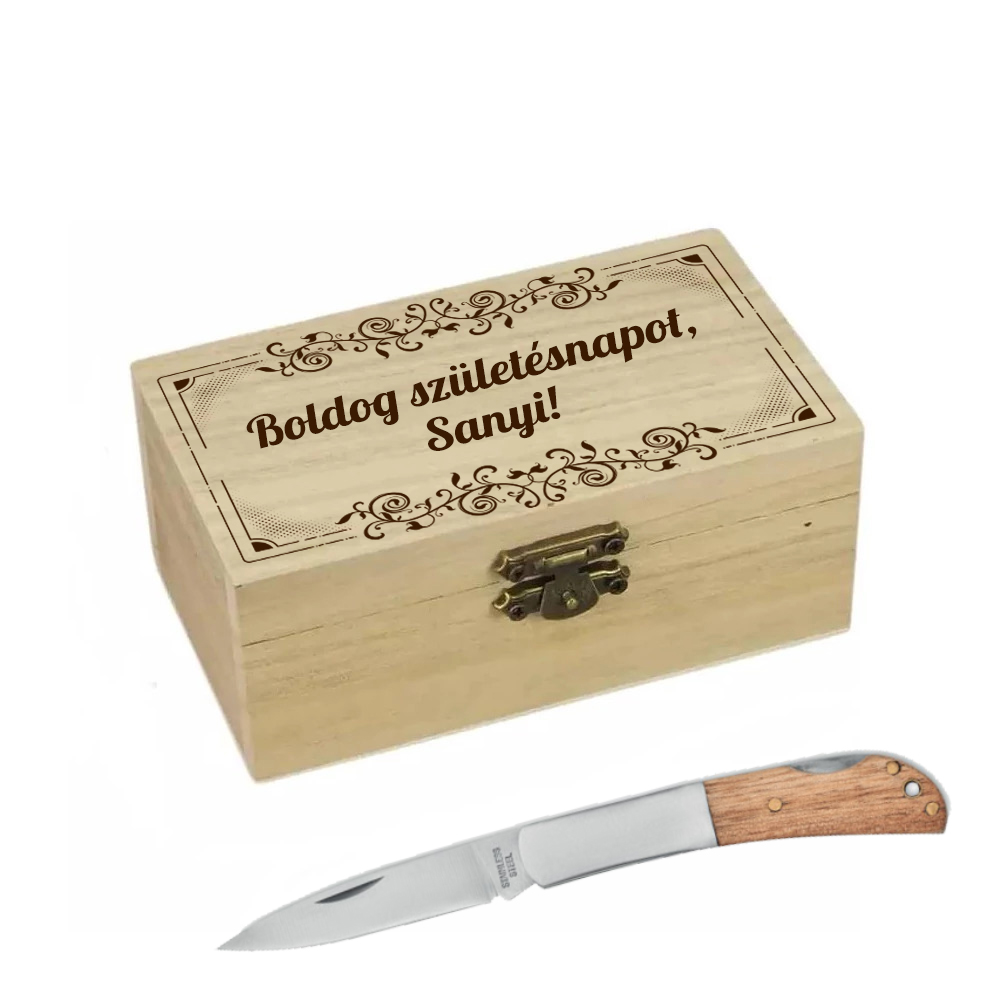 Anyaga: fa Méretei: 12,5 cm X 7 cm; magasság 5cm Mivel a fa természetes anyag, vastagsága és felülete termékenként változó lehet. Kérhető a bicskára is egyedi gravírozás - kérje a plusz gravírozást |