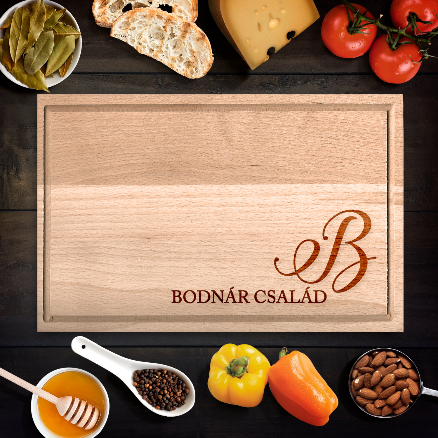 Fejezd ki a szereteted egy egész család felé! A négy méretben megrendelhető bükkfa vágódeszka bármilyen felirattal egyedi lehet, így bármilyen alkalomra szeretettel ajánljuk ajándékötlet gyanánt. Szerezd meg ugyanolyan mintával mindnen méretben, fejezzétek ki így is az összetartozást! Egy vágódeszka mindig praktikus ajándék, hiszen annyi mindenre használja az ember, hogy sosincs elég belőle.
