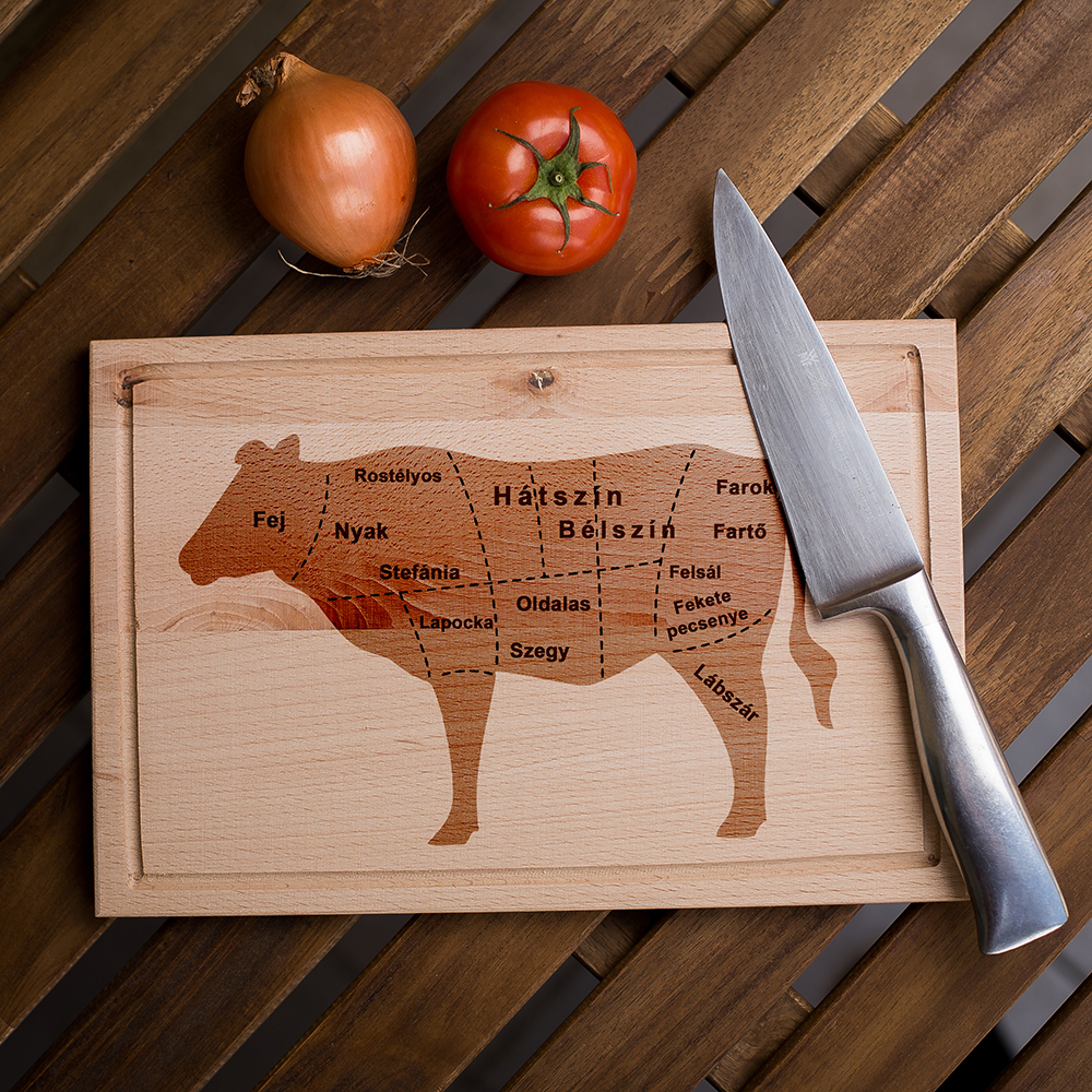 Igazán különleges meglepetéssel rukkolnál elő, de semmi ötleted? Akkor nem kell tovább keresgélned! Igazi konyhatündéreknek, háziasszonyoknak, mesterszakácsoknak ez az igazán egyedi, gravírozott vágódeszka a tökéletes ajándék ötlet! Mostantól nem lesz szükség szakácskönyvre a marha feldolgozásához, hiszen mindig kéznél lesz a puska, melynek segítségével gyerekjáték a főzés. Húsimádó férfiaknak és nőknek egyaránt kitűnő választás, születésnapra, névnapra, karácsonyra, lakásavató ajándék gyanánt szintén kiválóan megállja a helyét!