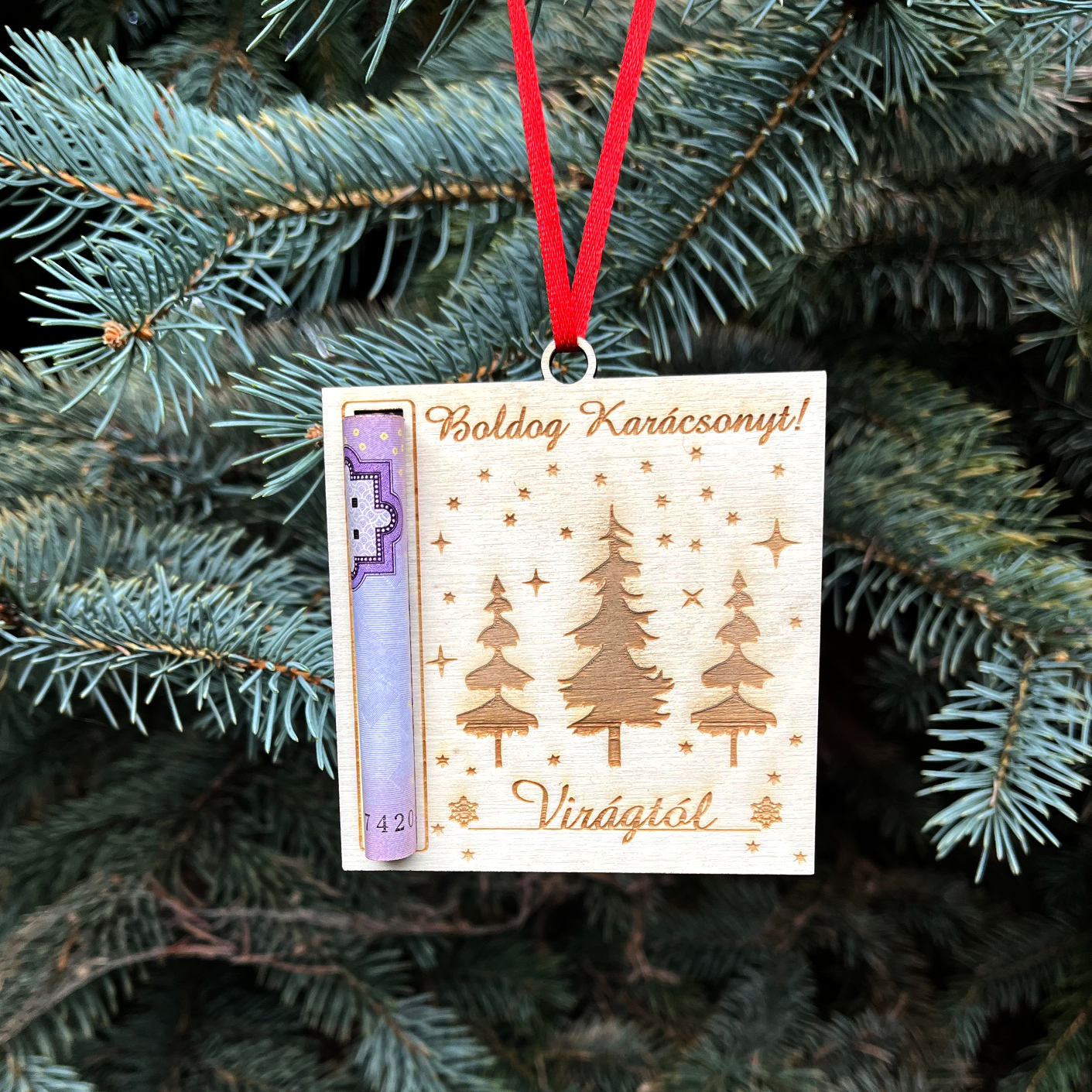 Egyedi neves pénztartós karácsonyfadísz