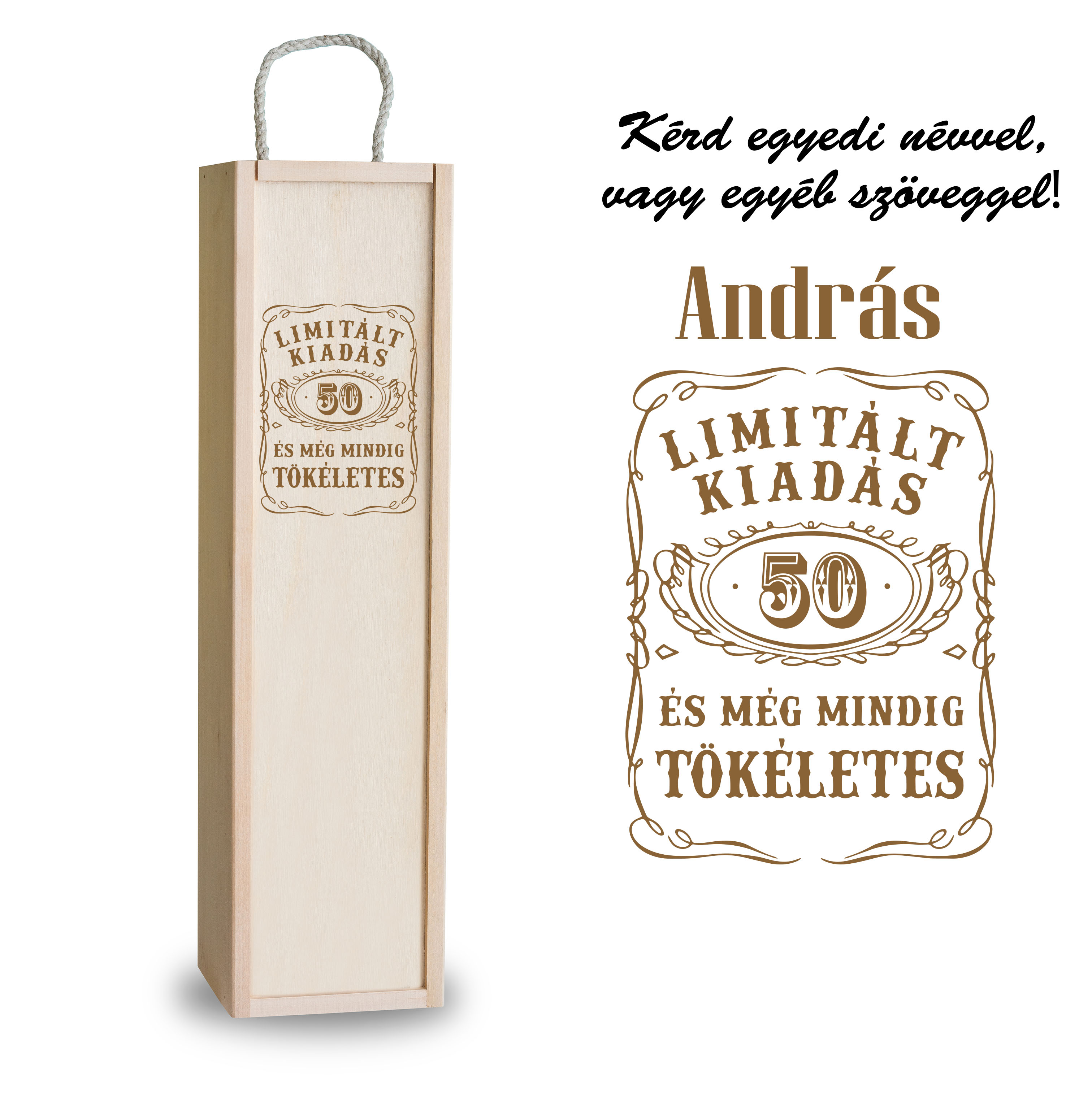 Szuper, hogy lassan már fél évszázada lakik a földön, nemigaz? Itt a remek alkalom emlékezetessé tenni és megünnepelni vele. Vannak olyan – kerek vagy emlékezetes – születésnapok, amelyek fontosabbak, mint az átlagos: az 50. születésnap ilyen. Lepd meg a 50 éves születésnapost egy fából készült, gravírozott, születésnapi bortartóval. Tedd még személyesebbé, gravíroztasd bele a nevét és rejtsd el benne a kedvenc borát. (Ha nagy boros, szerezd meg neki a kivételesen izgalmas dupla bortartós változatot). Csapj le rá most imádni fogja ezt az időtálló születésnapi ajándékot.