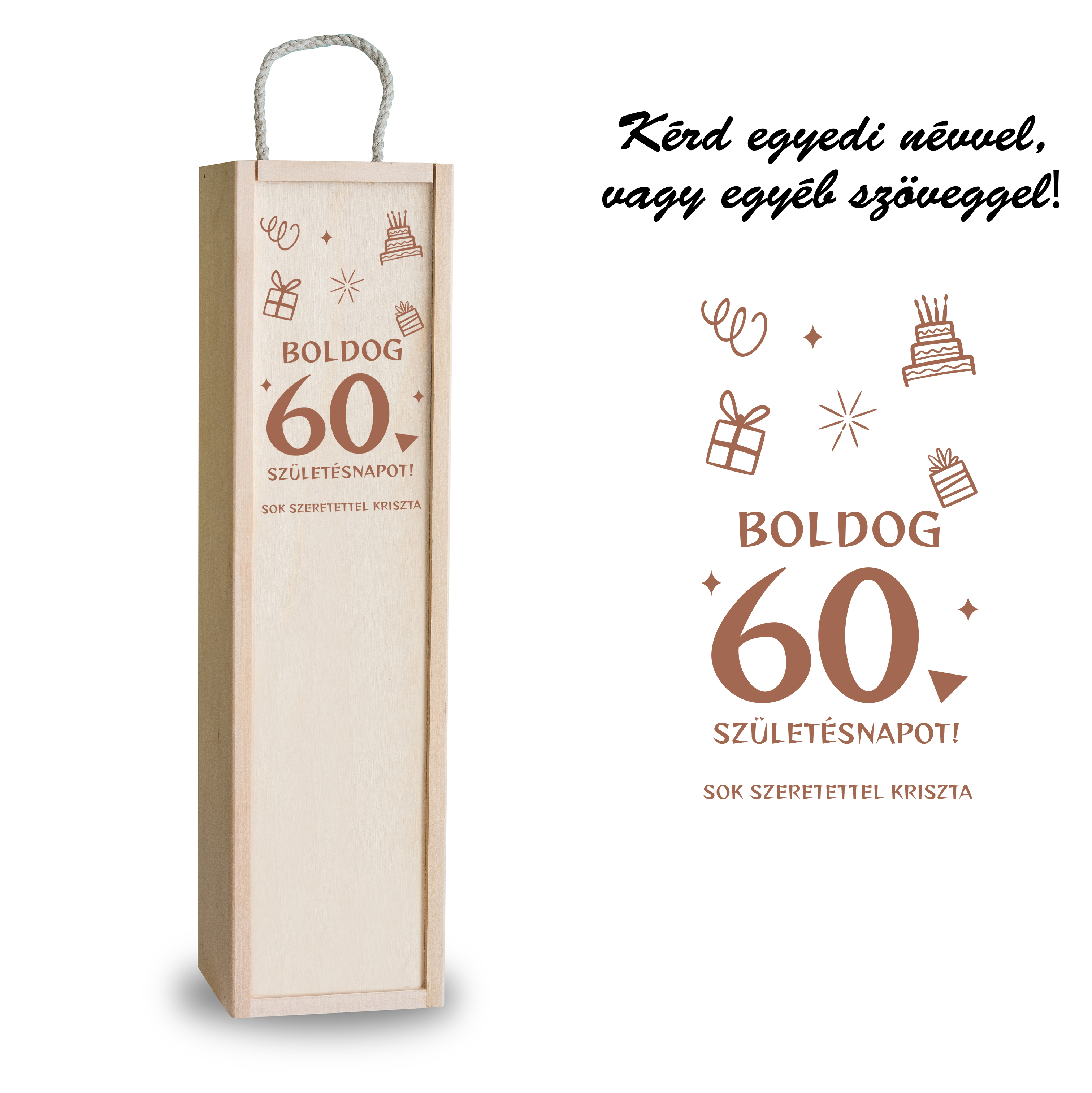 Ez az ajándék ötlet születésnapra extra személyessé válhat a fa bortartó dobozon elhelyezhető gravírozott "Boldog születésnapot" felirattal, valamint az ünnepelt nevével vagy egy rövid üzenettel. Ez a részlet teszi a bortartó dobozt egyedülállóvá és emlékezetessé.