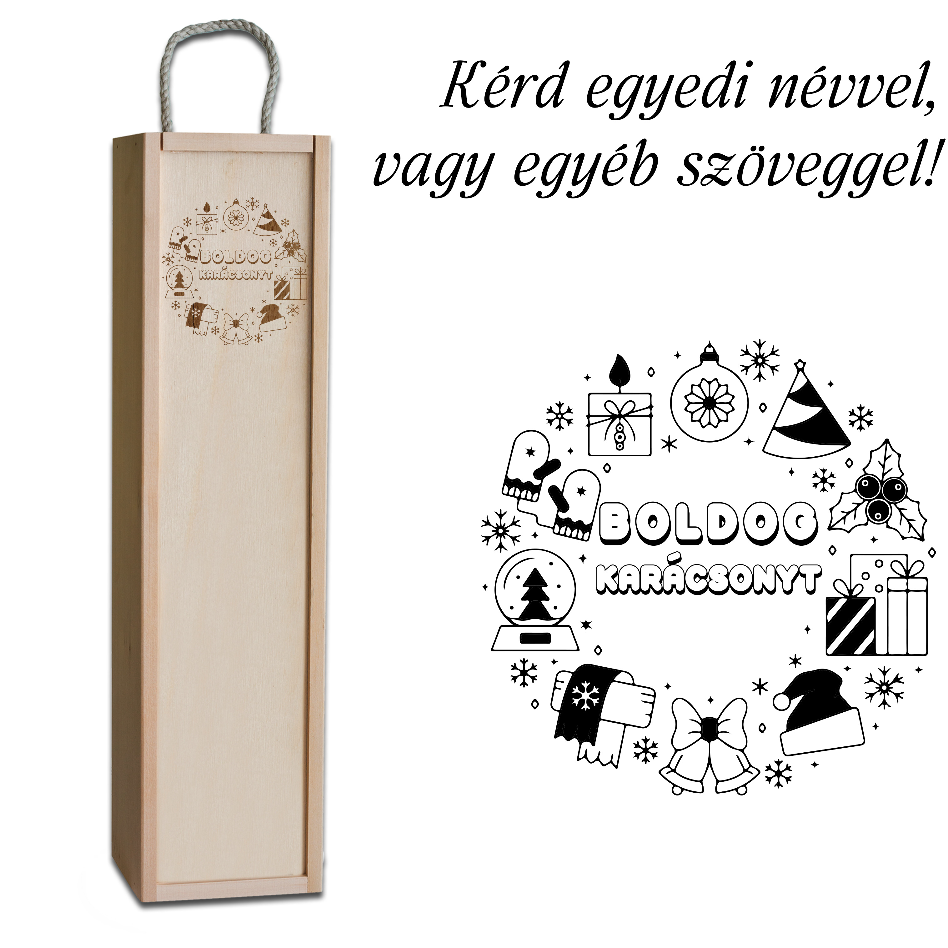 Karácsonyra mindig olyat ajándékozunk, ami igazán szívből jön, egyedi és személyre szóló. Ez a gravírozható bortartó pontosan ilyen ajándék. A bor a legnemesebb italok egyike, és a kor előrehaladtával egyre csak jobbá és értékesebbé válik. Tedd bele ebbe a fából készült, elegáns bortartó dobozba, és ajándékozd meg ezzel a szeretet ünnepén. Meleg szívvel ajánljuk szeretteidnek, rokonaidnak, barátaidnak, és üzleti partnereidnek is kiváló választás karácsonyi ajándéknak. Gravírozási tippek: A megajándékozott neve, az ajándékozó neve, egy kedves idézet, jókívánságok, dátum, cégnév.