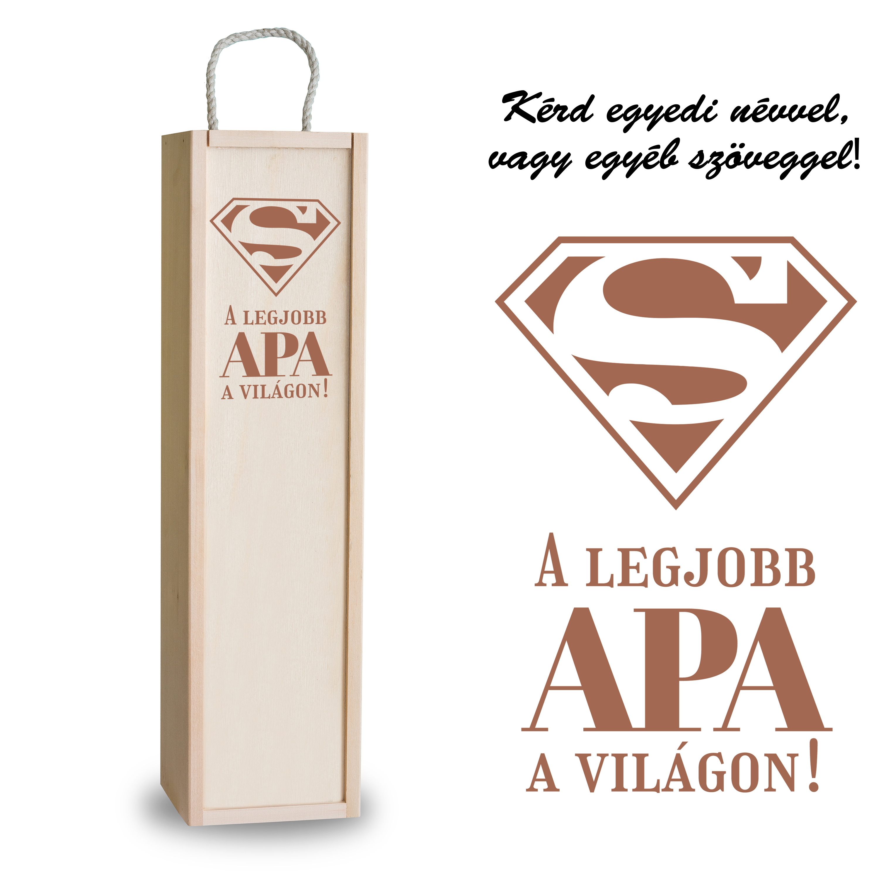 Szimpla boros doboz: Anyaga: Natúr fa Méretei: 10 cm x 10 cm x 35 cm