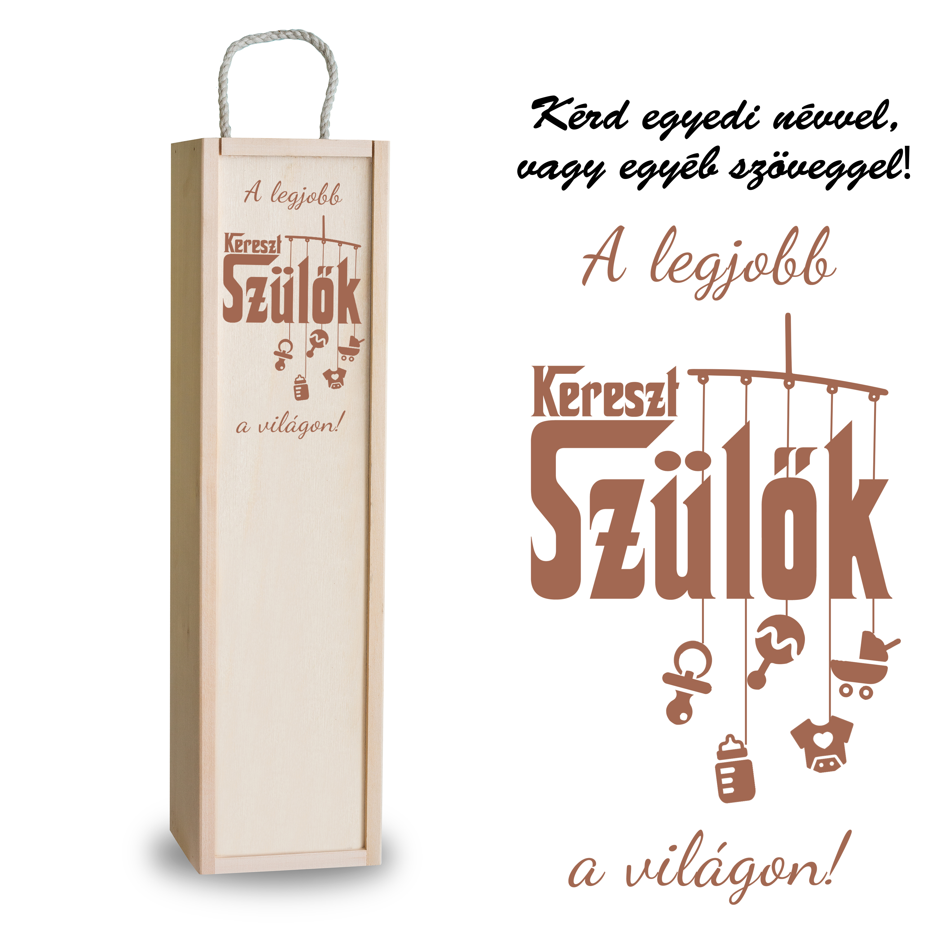 Egyedi ajándék ötletként ez a bortartó doboz keresztszülőinek, keresztanyáinak vagy keresztapáinak szól, kifejezve a különleges köteléket. Minőségi natúr fa anyaga tartósságot és időtállóságot biztosít, míg az elegáns kivitelezés stílust ad az ajándéknak.