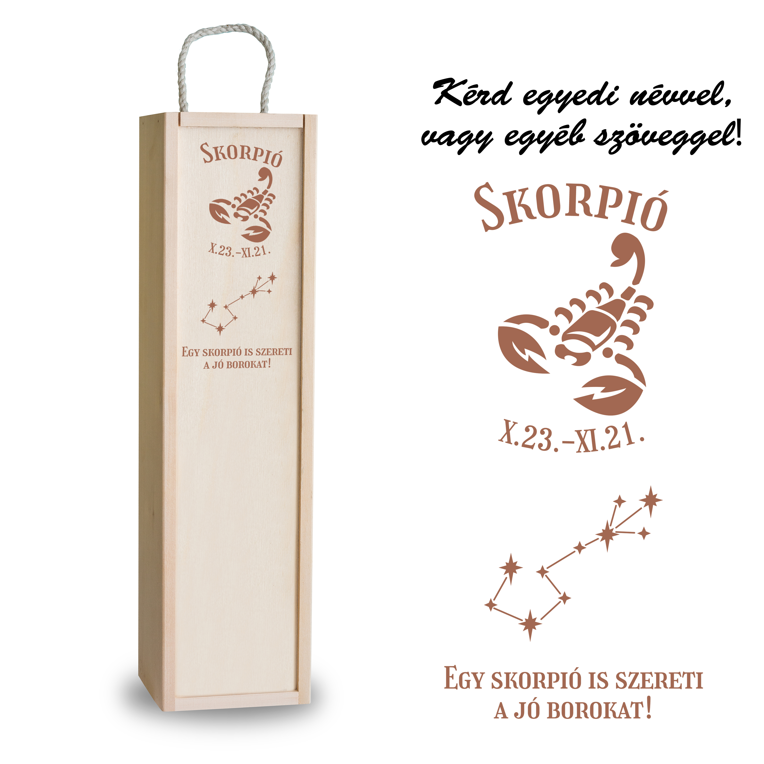 Keresed az ideális szülinapi ajándékot egy Skorpió jegyű barátodnak vagy szerettnek? A Fa bortartó doboz - Skorpió tökéletes választás lehet. Ez a natúr fából készült boros doboz nem csupán egy egyszerű ajándék, hanem egy gondosan kiválasztott és személyes meglepetés, amely garantáltan örömet okoz majd.