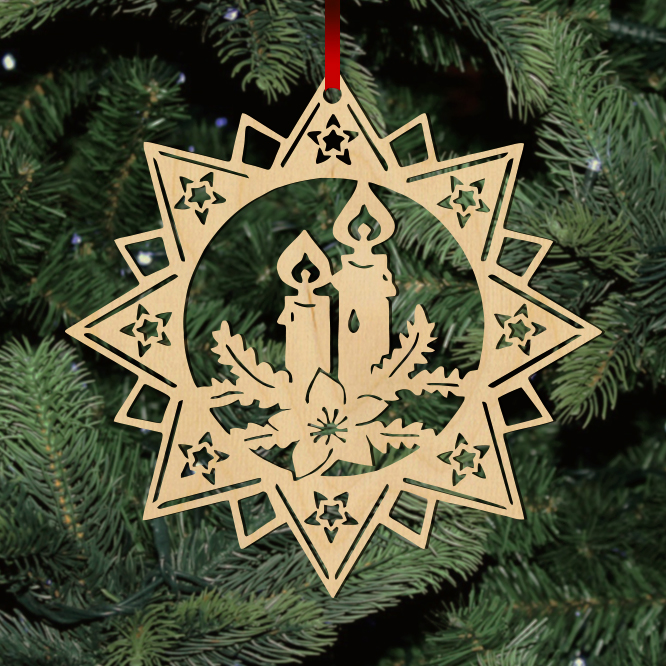 Fa karácsonyfadísz – Csillag gyertyával