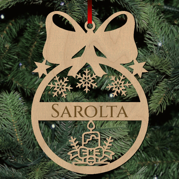 Fa karácsonyfadísz - Egyedi neves - Gyertya