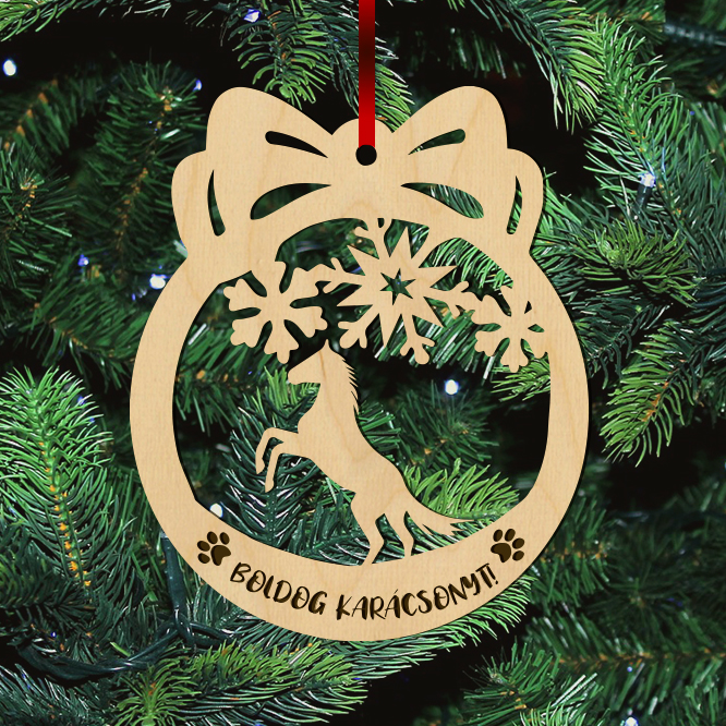 Nagy kihívás előtt állsz, ha a lovas, vagy lovakkal foglalkozó ismerősödnek, családtagodnak keresek karácsonyi ajándékötletet, de most megtaláltad. Nem erőltetett, látszik, hogy gondoltál rá és az is, hogy ismered őt, a hobbiját. A stilizált lovat ábrázoló fa karácsonyi ajándék tökéletes dísz a csomagoláshoz, vagy a fára: minden típusú és színű házhoz jól áll, hiszen fa színű, nem vonja magára a figyelmet. Briliáns ötlet, szerezd meg és akaszd a fára a legszebb ünnepen.