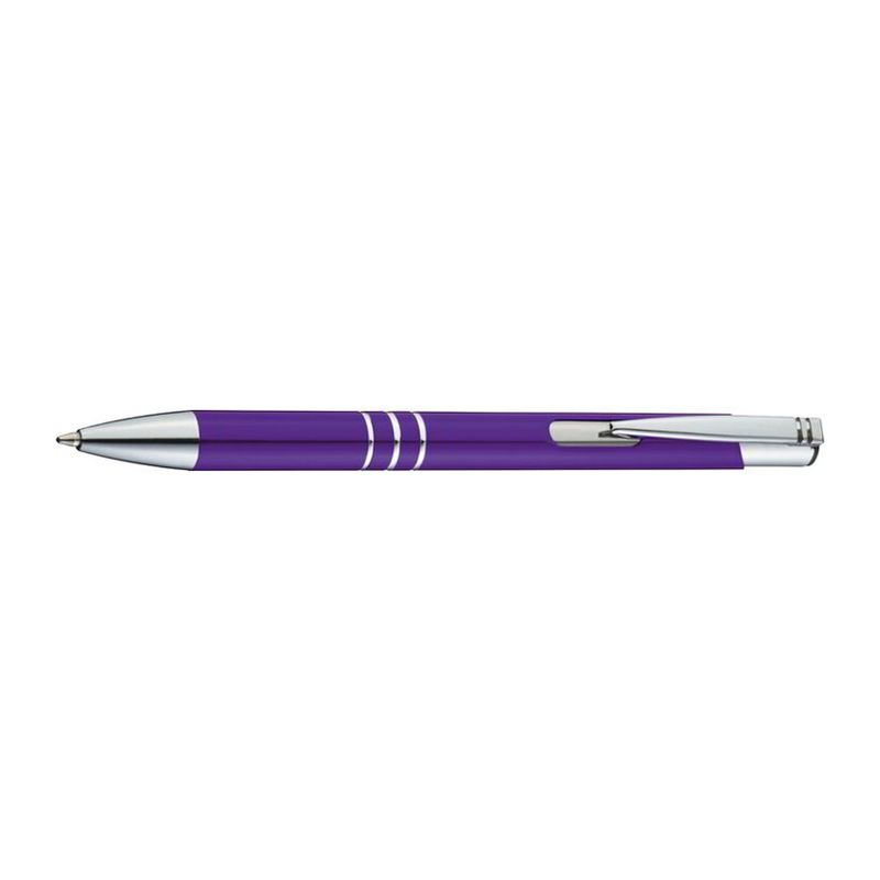 Kéken író fém golyóstoll, különböző színekben, 3 db ezüst gyűrűvel, klipsszel. Mérete:13,6 cm x 1cm átmérő