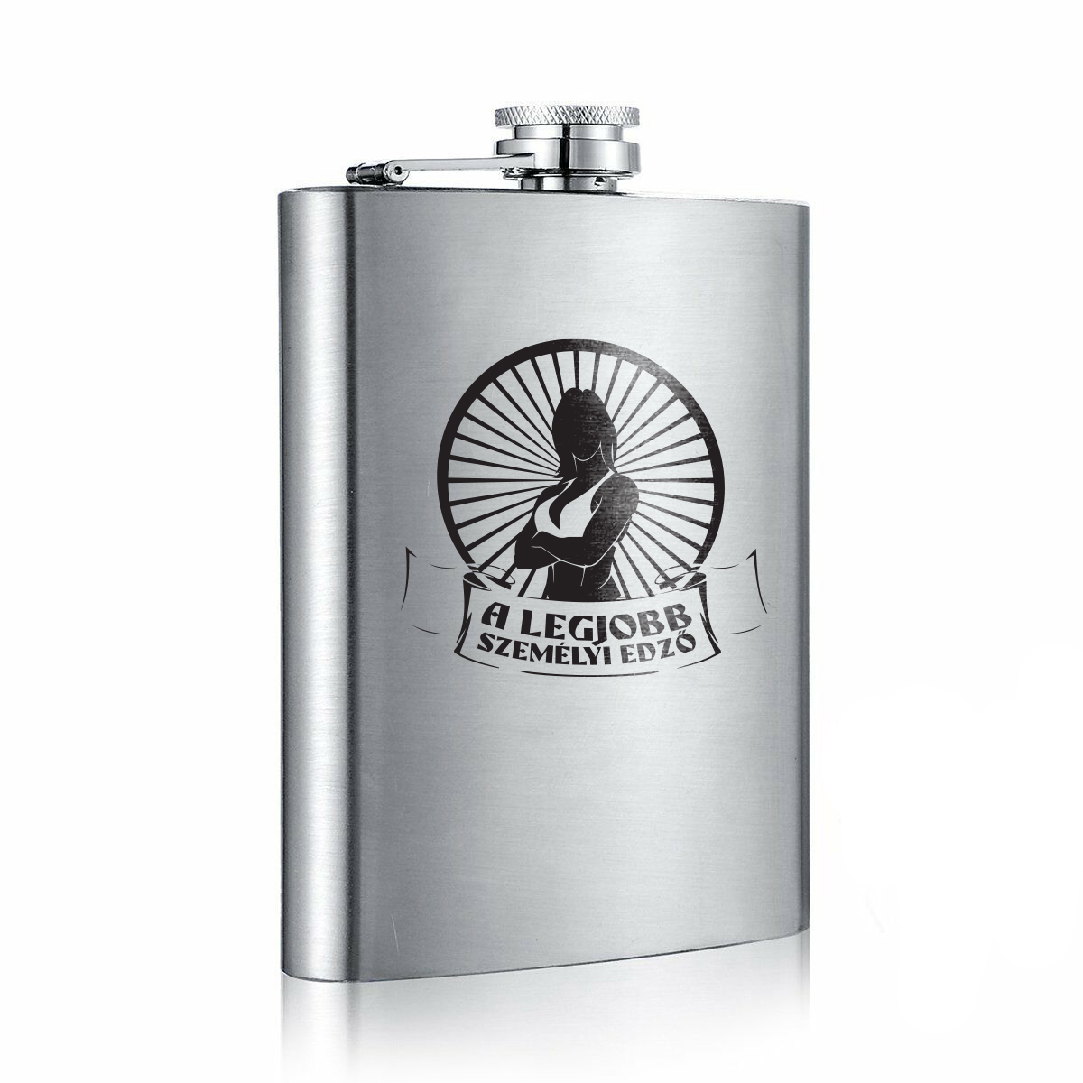 Az ajándékötlet, amit nem vesz meg magának, de vágyik rá. Ezüst színű, elegáns, egyszerű vonalvezetésű, „a legjobb személyi edzőnek szóló” flaska vagy akár flaska szett melyhez tartozik kettő darab ajándékpohár is. A flaska már önmagában is egy időtálló ajándék, de névre szólóan még átgondoltabb ötlet: kérd úgy, gravíroztasd bele a nevét. Innentől kezdve a megajándékozott mindig magánál tudja tartani és mindig vihet magával egy keveset a kedvenc italából. Szerezd meg még ma, ne hezitálj, imádni fogja.