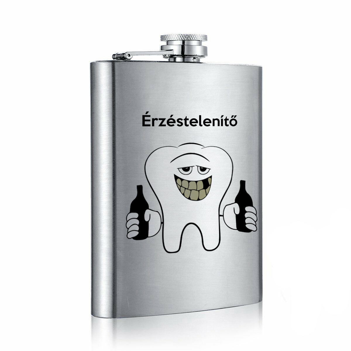 Fél a fogorvostól, vagy netán éppen Ő maga fogorvos? Itt a tökéletes ajándék neki. Vicces, „Érzéstelenítő” feliratú fém flaskánk a kedvence lesz. Ebben a mókás megjelenésű laposüvegben az is nagyszerű, hogy gravírozással tökéletesen személyre szabható. Egyszerre vidám és hasznos ajándék. Válassz hozzá pohár szettet, tölcsért is, és koccintsatok együtt az ünnepelttel az egészségére. Születésnapra, névnapra és más jeles alkalomra is remek, egyedi ajándék ötlet. A röviditalos flaska fémből készül, strapabíró, tartós. Sokáig fog örömöt okozni a megajándékozottnak.