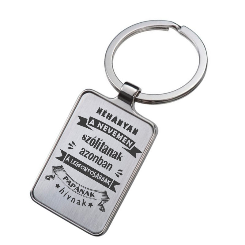 Egy egyszerű kulcstartónak tűnik, pedig sokkal több annál. Egy tárgy, amit mindig magánál tart, ami mindig rád emlékezteti, egy kedves üzenettel, mely kifejezetten neki szól. A kedves szavakat tartalmazó lapkulcstartó nem nehéz, ugyanakkor a rá gravírozott üzenet feledhetetlenné teheti. Lepd meg vele és add át a saját nevedben a papádnak, vagy tökéletes ajándékötlet a családtól a papának.