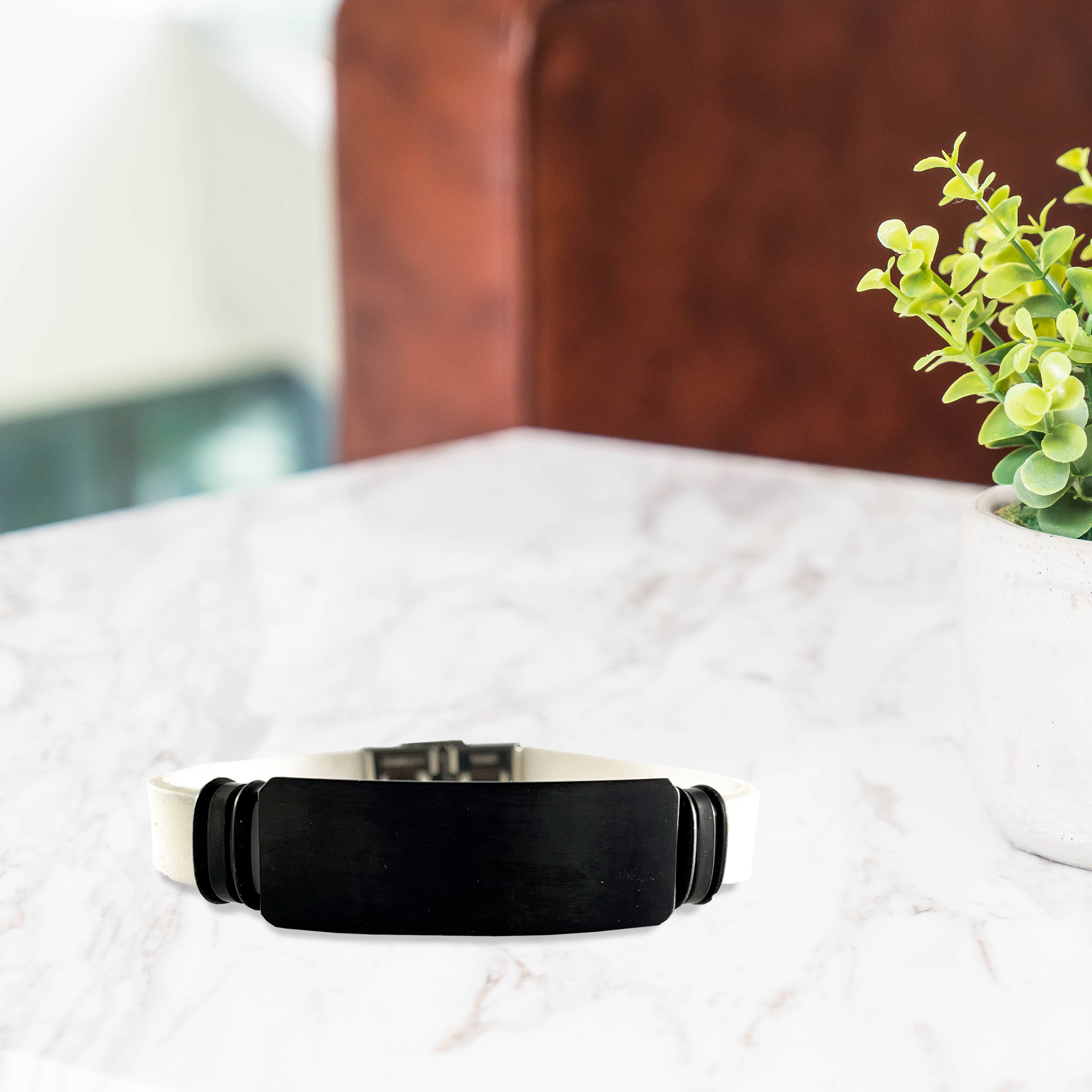 Gumi karkötő - gravírozható - Fehér / ezüst