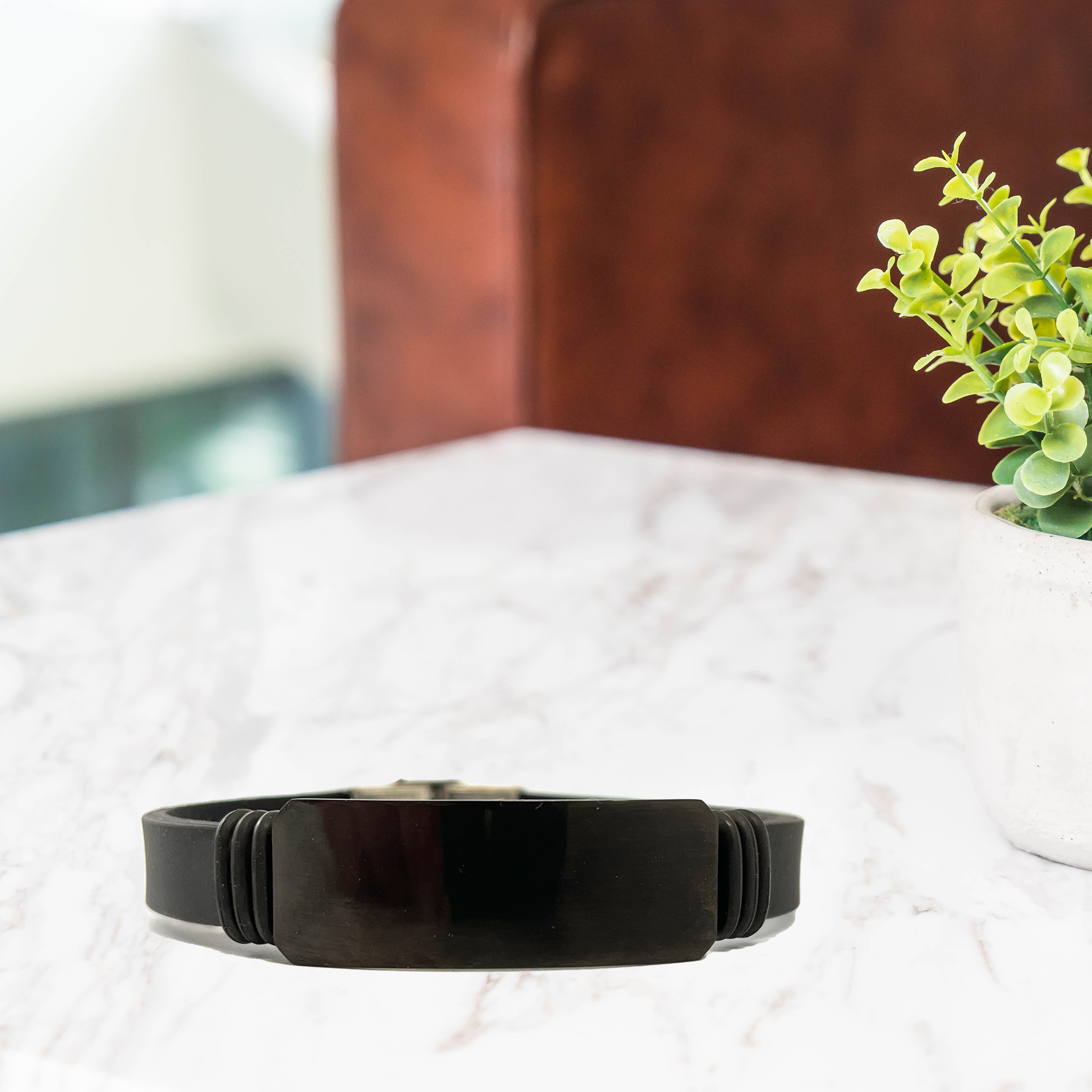 Gumi karkötő - gravírozható - Fekete / ezüst