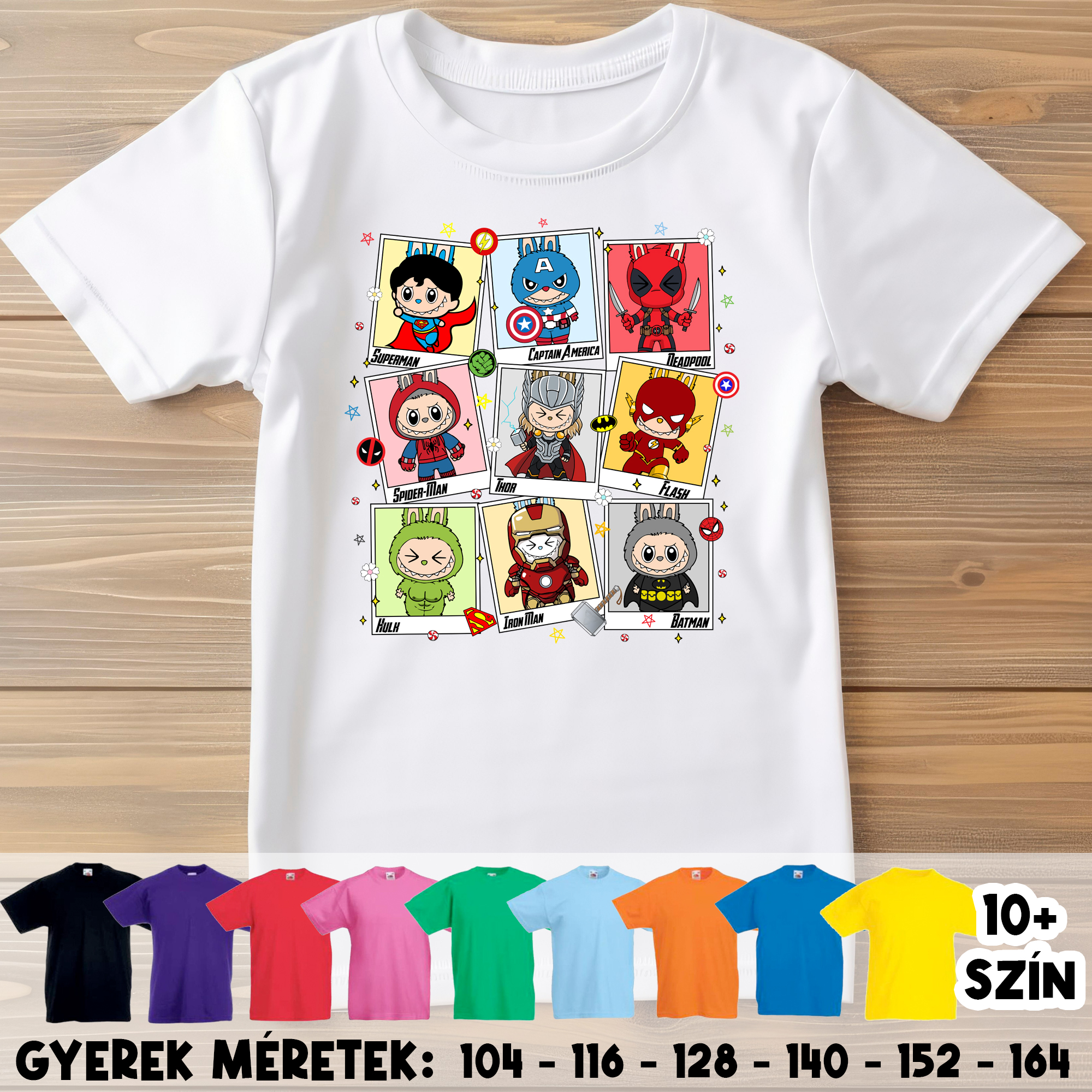 Gyerek póló - Labubu - Szuperhősök kollázs