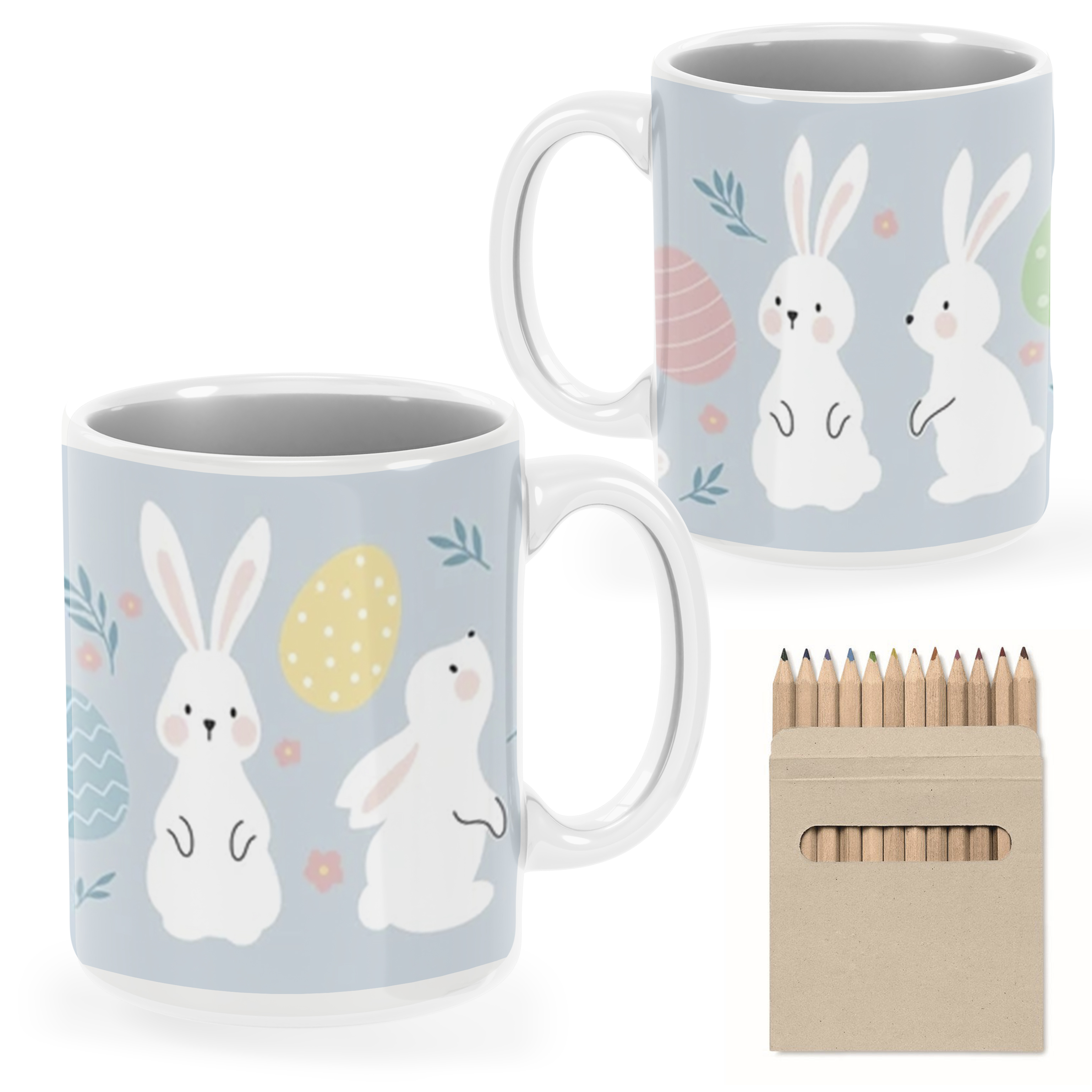 A csomag tartalma: -1db 300 ml kerámia bögre, nyuszis mintával -1db színes ceruza csomag 12db ceruzával A csomag eredeti ára: 3990.-