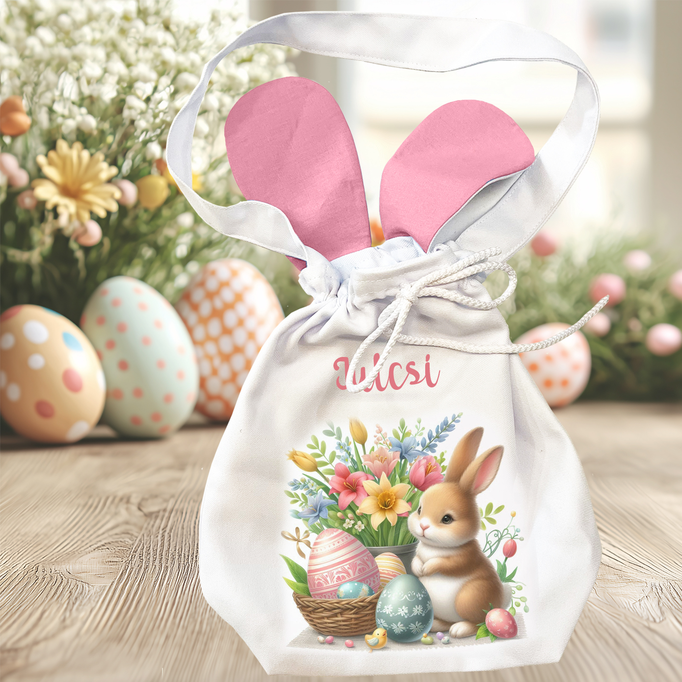 Húsvéti nyuszifüles zsák - Nyuszi húsvéti dekorral