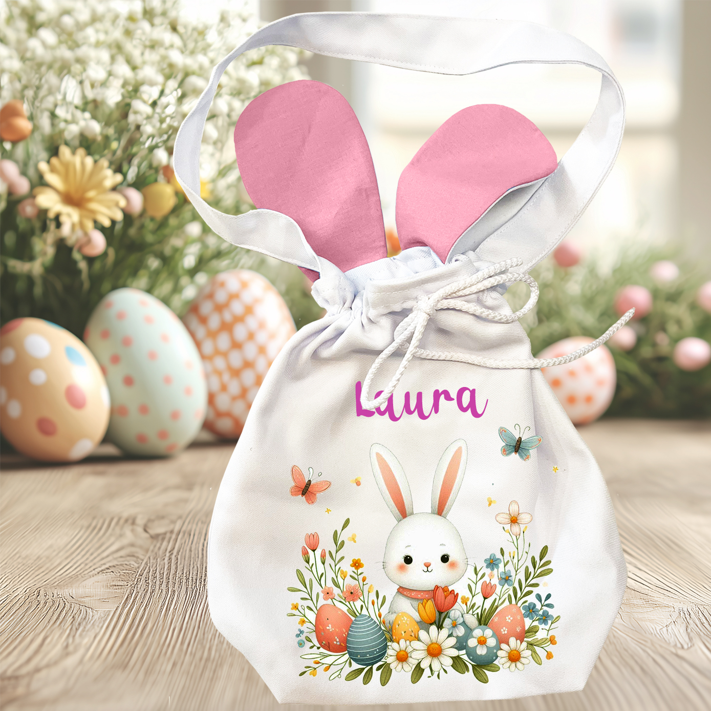 Húsvéti nyuszifüles zsák - Virágos nyuszi