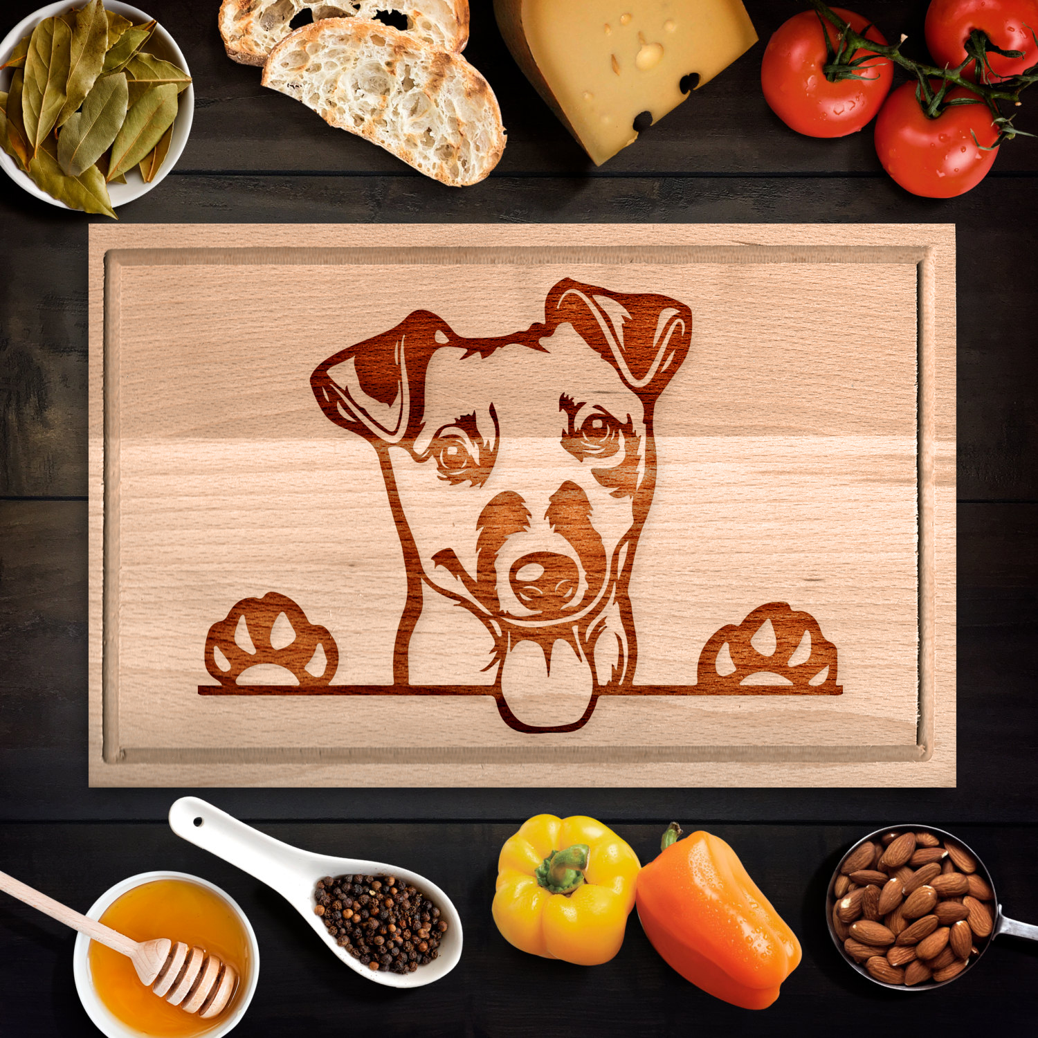 Kevés olyan ajándék ötlet van amelyik a russel terrier gazdinak kitűnő ajándék, de ez a vágódeszka ilyen. Képzeld el a megajándékozottat, amikor „csalódottan” veszi tudomásul, hogy egy egyszerű vágódeszkát kapott ajándékba, mígnem észre nem veszi azt, hogy tökéletesen egyedivé varázsoltad, így egy örök ajándékká vált. Ez a vágódeszka férfiaknak és nőknek egyaránt csodás ajándék ötlet születésnapra, névnapra, karácsonyra, vagy „csak úgy”. Válaszd ki a neked legjobban tetsző méretet, és máris szállítjuk ezt az időtálló ajándékot.