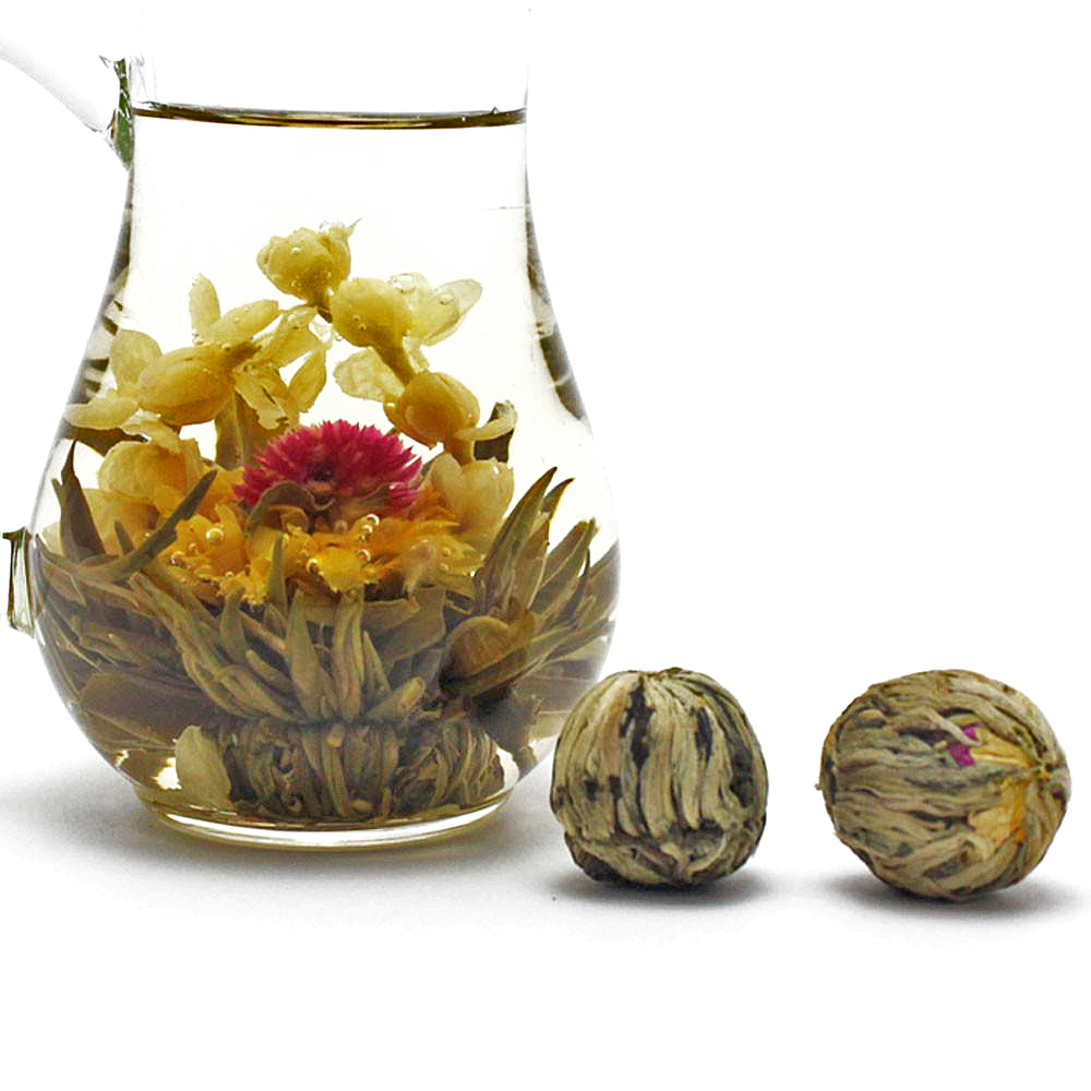 A csomag 1db teagolyót tartalmaz! A doboz megjelenéséből adódóan ajándéknak is kiválló! Gömb alakúra formázott teából narancssárga liliom és fehér színű jázminvirágok bukkannak elő. ÖSSZETEVŐK: zöld tea (95%) körömvirág (3,5%), jázmin (1,5%) Egy gumóból kb. 1- 1,5 liter tea készíthető, függően attól, ki mennyire erősen kedveli. ELKÉSZÍTÉSE: Meleg víz (nem forró) hatására a tealevelek lassan kibomlanak, és láthatóvá válnak a bennük rejlő virágok is. |