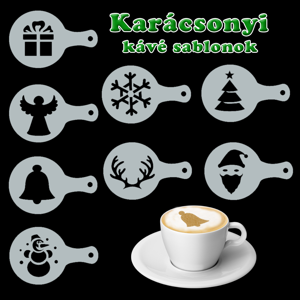 Egy kávé rajongónak, baristának keresel ajándékot karácsonyra? Ezek a különleges barista sablonok tökéletes ajándékok karácsonyra és az adventi időszakra. Ezekkel a sablonokkal könnyedén egyedi és dekoratív kávékülönlegességeket varázsolhat otthon vagy kedvenc kávézójában, baráti és családi összejöveteleken a megajándékozott. A kávé sablonok olyan különböző karácsonyi motívumokkal rendelkeznek, mint például a hópelyhek, a Mikulás, a karácsonyfa és mások. A használata egyszerű, szinte gyerekjáték. Lepd meg őt ezzel a meghitt, karácsonyi hangulatú sablon készlettel, és kávézzatok együtt minél többet!