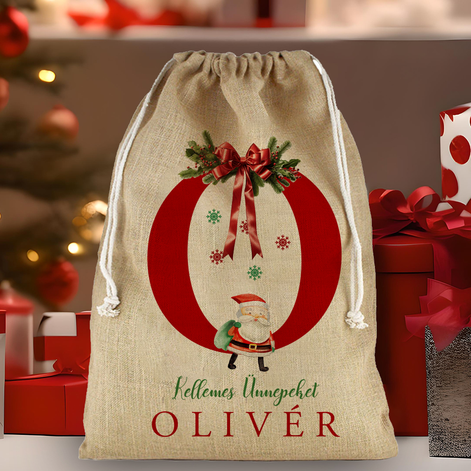 Mikulás zsák - Pamut vászon - Kellemes Ünnepeket