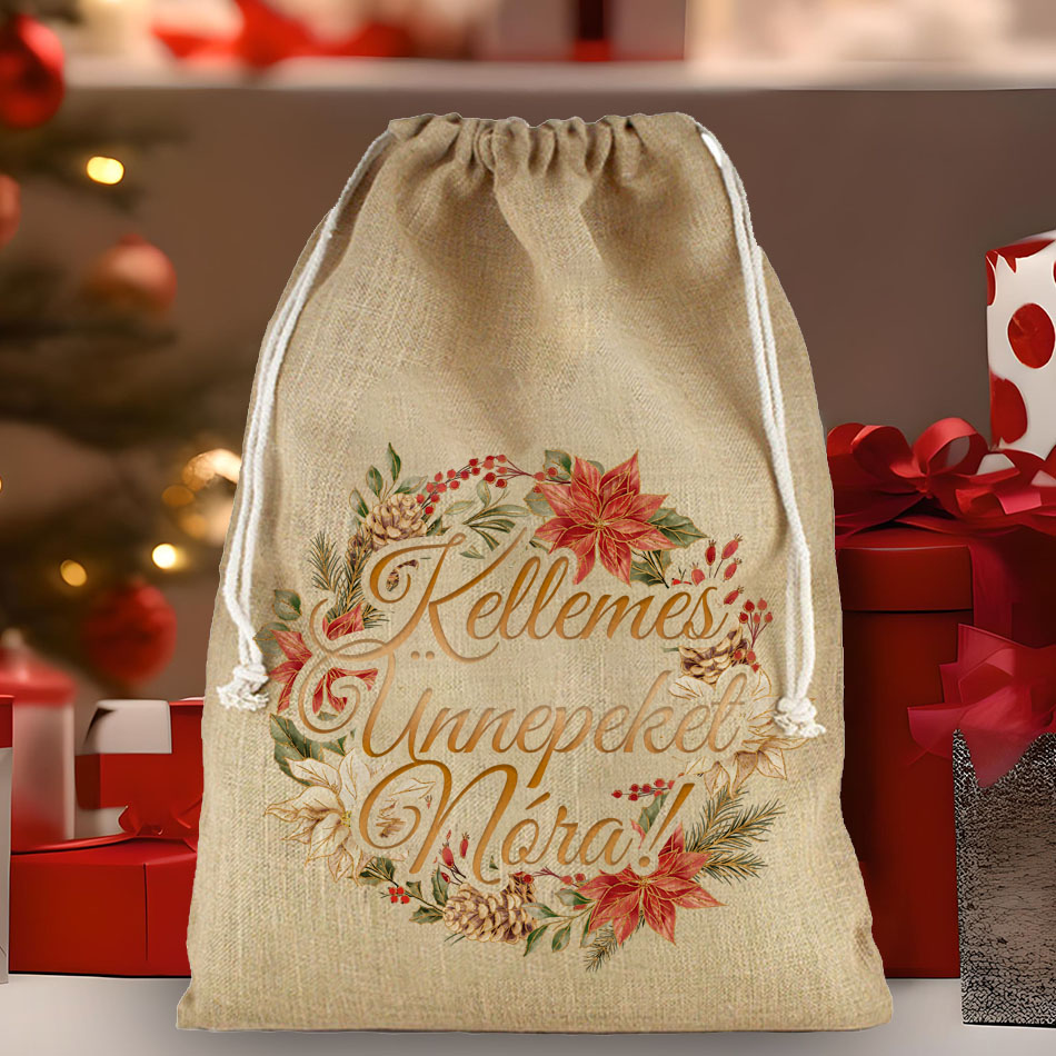 Mikulás zsák - Pamut vászon - Mikulásvirág
