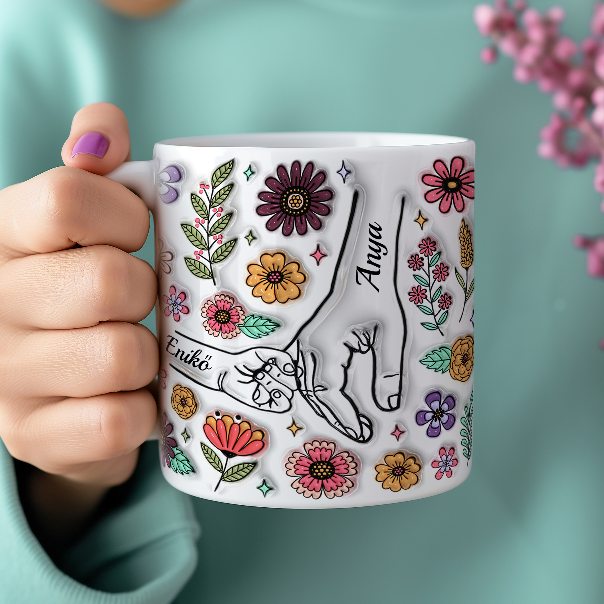 Névre szóló anyás bögre virágos 3D hatással - 1 gyermek