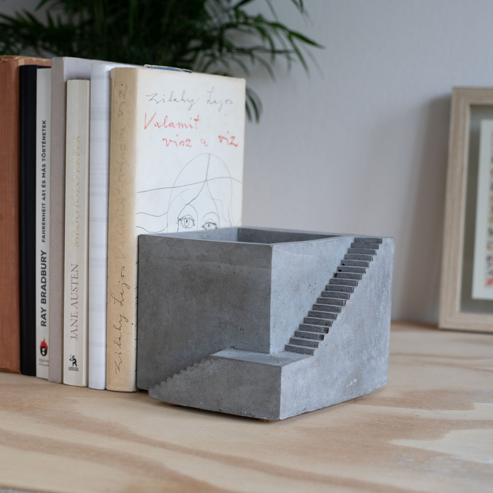 Óriás könyvtámasz, lépcsős növénytartó - "Escalier" - szürke