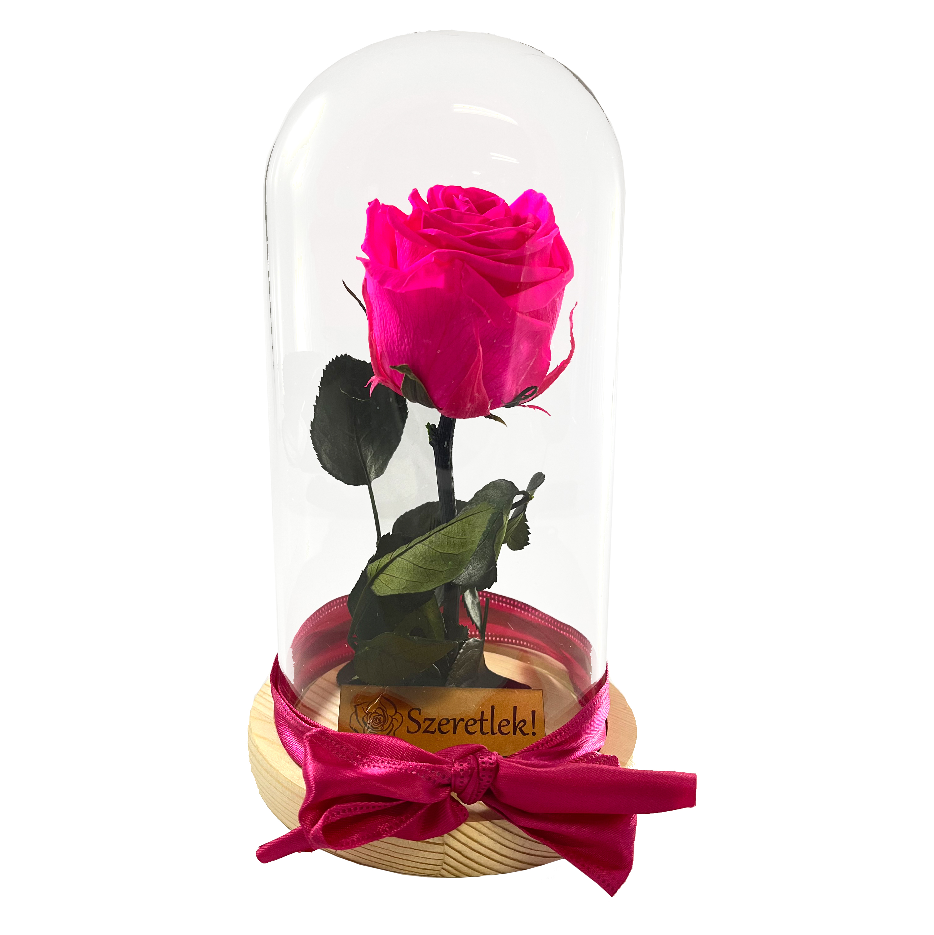 Szeresd addig, míg ez a rózsa teljesen el nem hervad! Egy átlagos rózsánál ez nem lenne túl hosszú idő, de a tartósított örökrózsával ez az ígéret hosszú ideig megmaradhat. Fontos különbség a művirág és a tartósított rózsa között, hogy utóbbi valódi rózsa, amelyet egy különleges eljárással tartósítanak, így minőségét hosszú ideig minőségromlás nélkül megőrzi, de a teljes hervadáshoz nagyon sok idő kell. A virágot tilos locsolni, vízbe tenni, vizes ronggyal áttörölni, egyáltalán nem érheti nedvesség! Üvegbúra mérete: 21 cm magas, 12 cm átmérőjű, a virágfej átmérője 4,5 - 6cm |