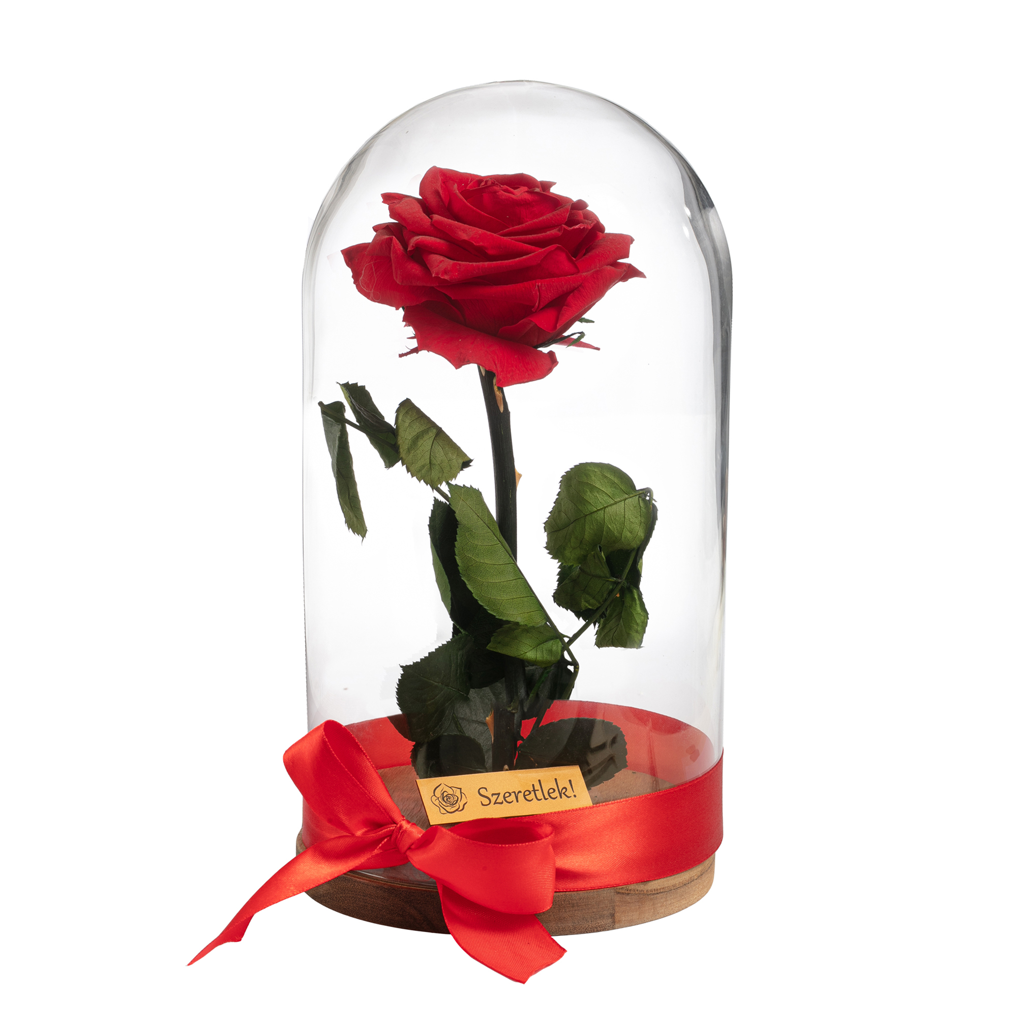 Örökrózsa üvegbúrában - nagy méretű piros örök rózsa