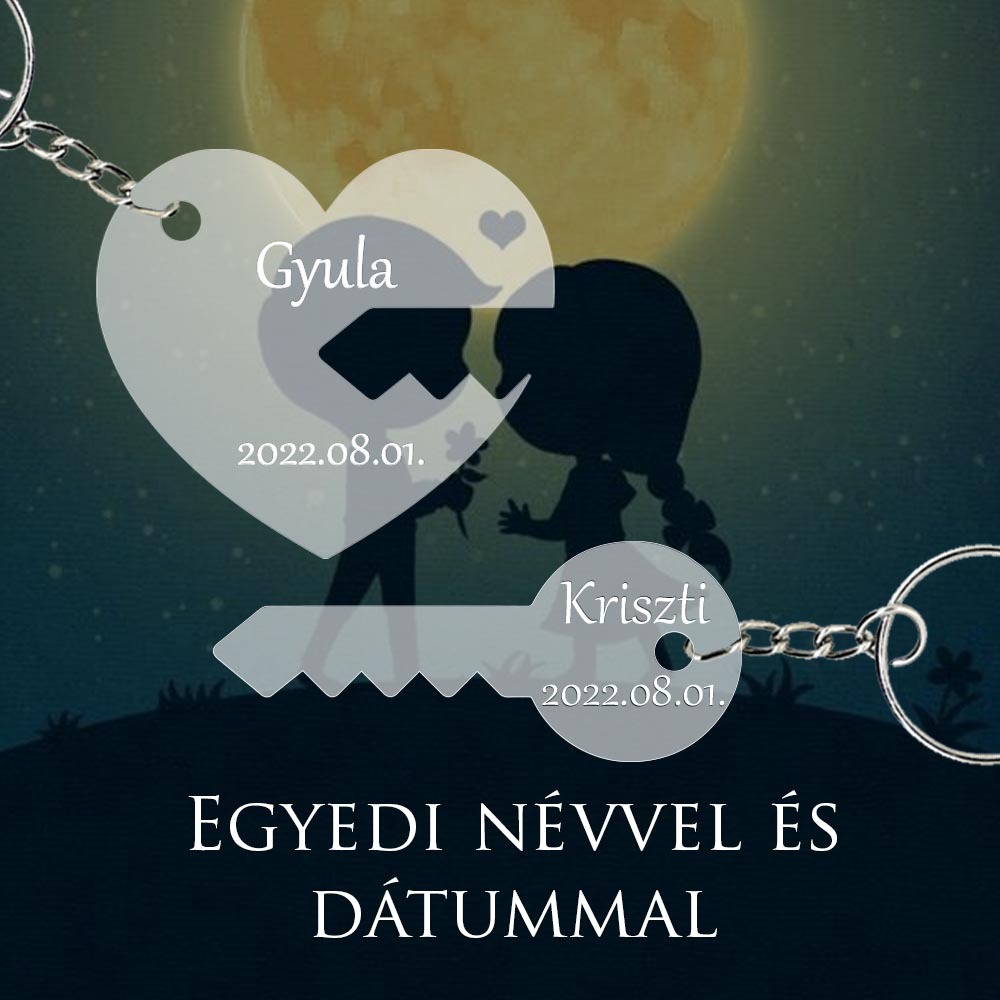 A szívet és az azt nyitó kulcsot megjelenítő kulcstartó pár tökéletes szimbóluma a kettőtök igaz szerelmének. Bájos, romantikus ajándék, aminek biztosan nagyon fog örülni a Kedvesed. Valentin napra és (házassági) évfordulóra is nagyon szép, személyre szabott, egyedi ajándék. Szívesen rágravírozunk nektek bármit. Például a nevetek és az egymásra találásotok dátuma nagyszerűen mutat rajta. Erről a különleges kulcstartóról mindig te és a köztetek lévő mindent elsöprő szerelem fog az eszébe jutni.