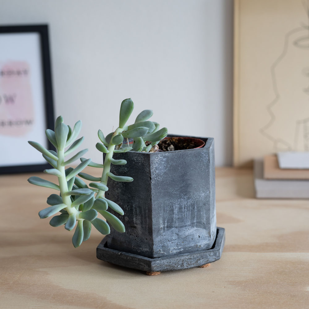 Sík falú növénytartó alátéttel - "Assez" - szürke