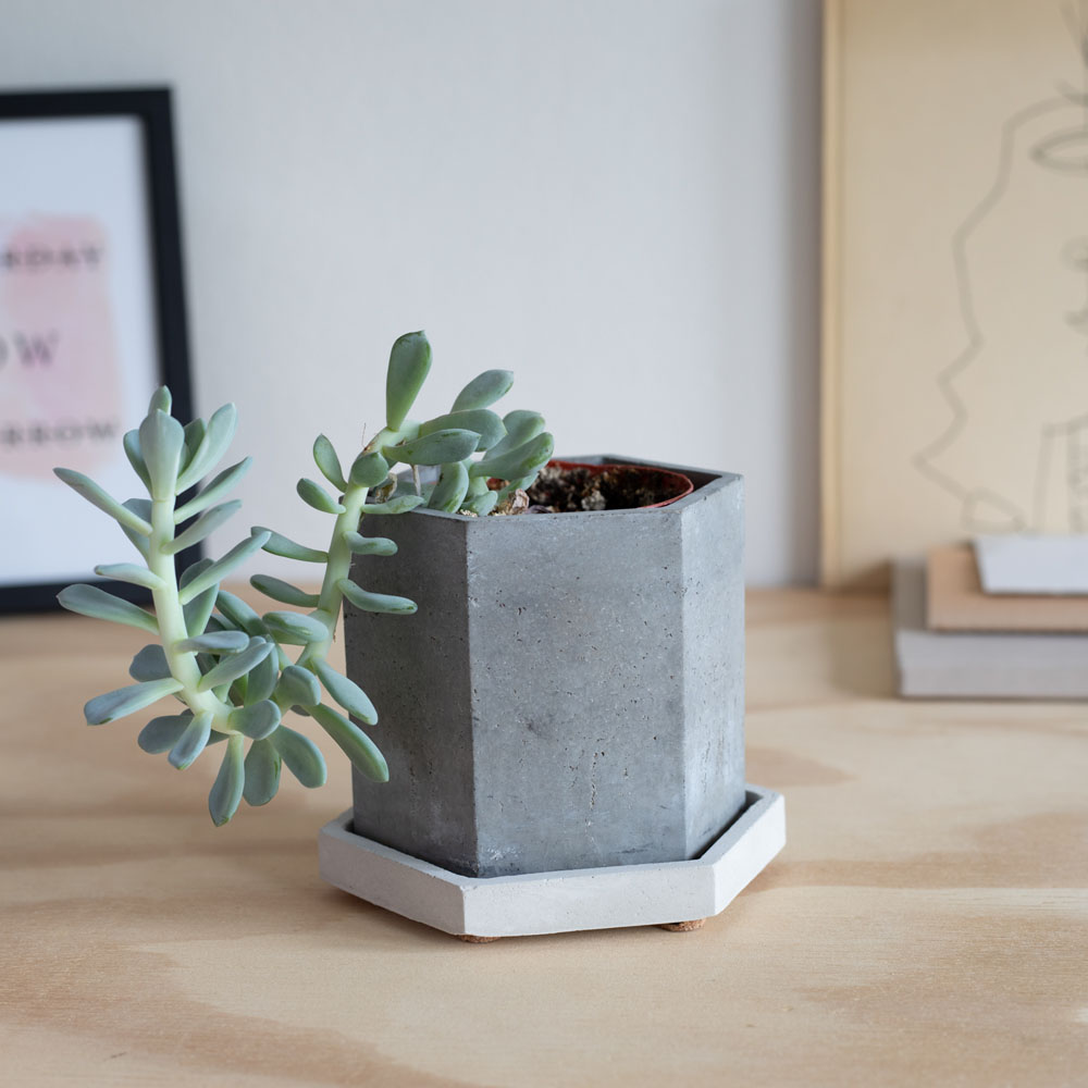 Sík falú növénytartó alátéttel - "Assez" - szürke