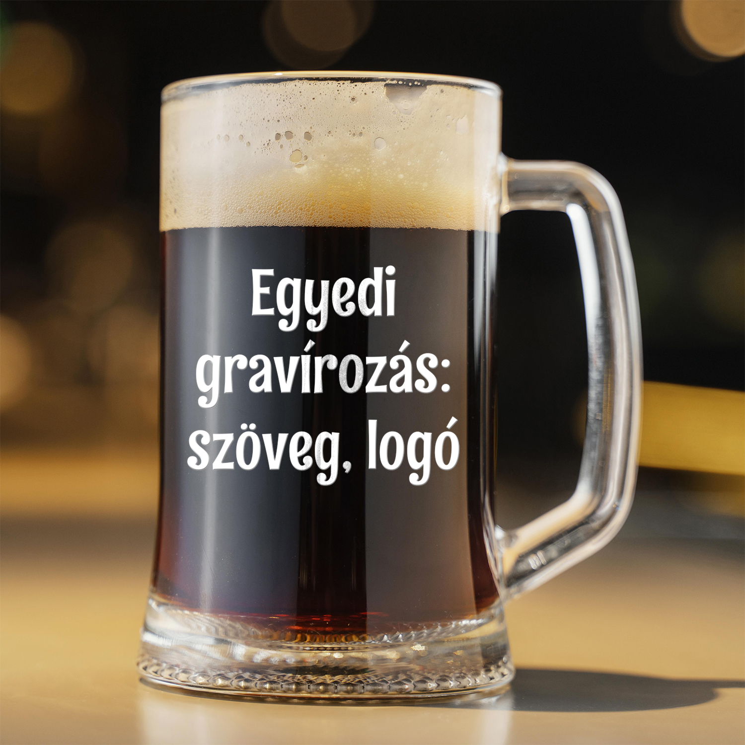 Az egyenajándékok megúszósak. Leveszel valamit a polcról, ez jó lesz, felkiáltással, pedig készíttethetsz akár egyedi, különleges meglepetést is. Ez a söröskorsó (mely természetesen fél literes és strapabíró) egy meghitt, odafigyelős, olyan ajándék amire évekkel később is emlékezni fog, hogy tőled kapta. Gravíroztass a korsóra egyedi szöveget, logót, jókívánságot és lepd meg egy személyre szabott ajándékkal. Szerezd meg, örülni fog neki.
