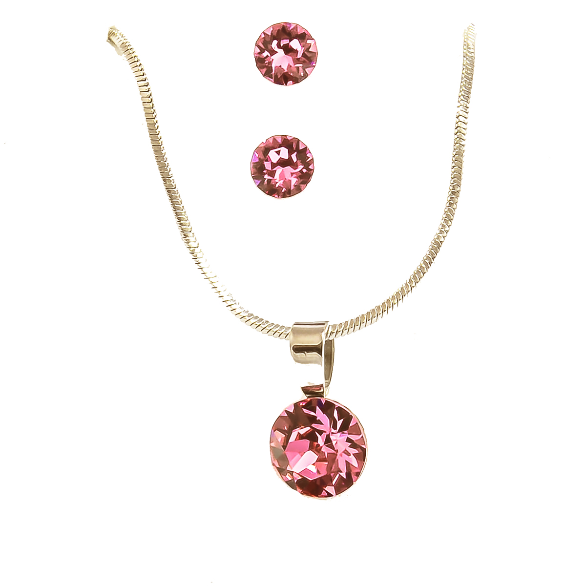 Elegáns, nemesacél medál 10 mm-es kör alakú Swarovski kristállyal és 1 pár 4 mm-es fülbevalóval.
