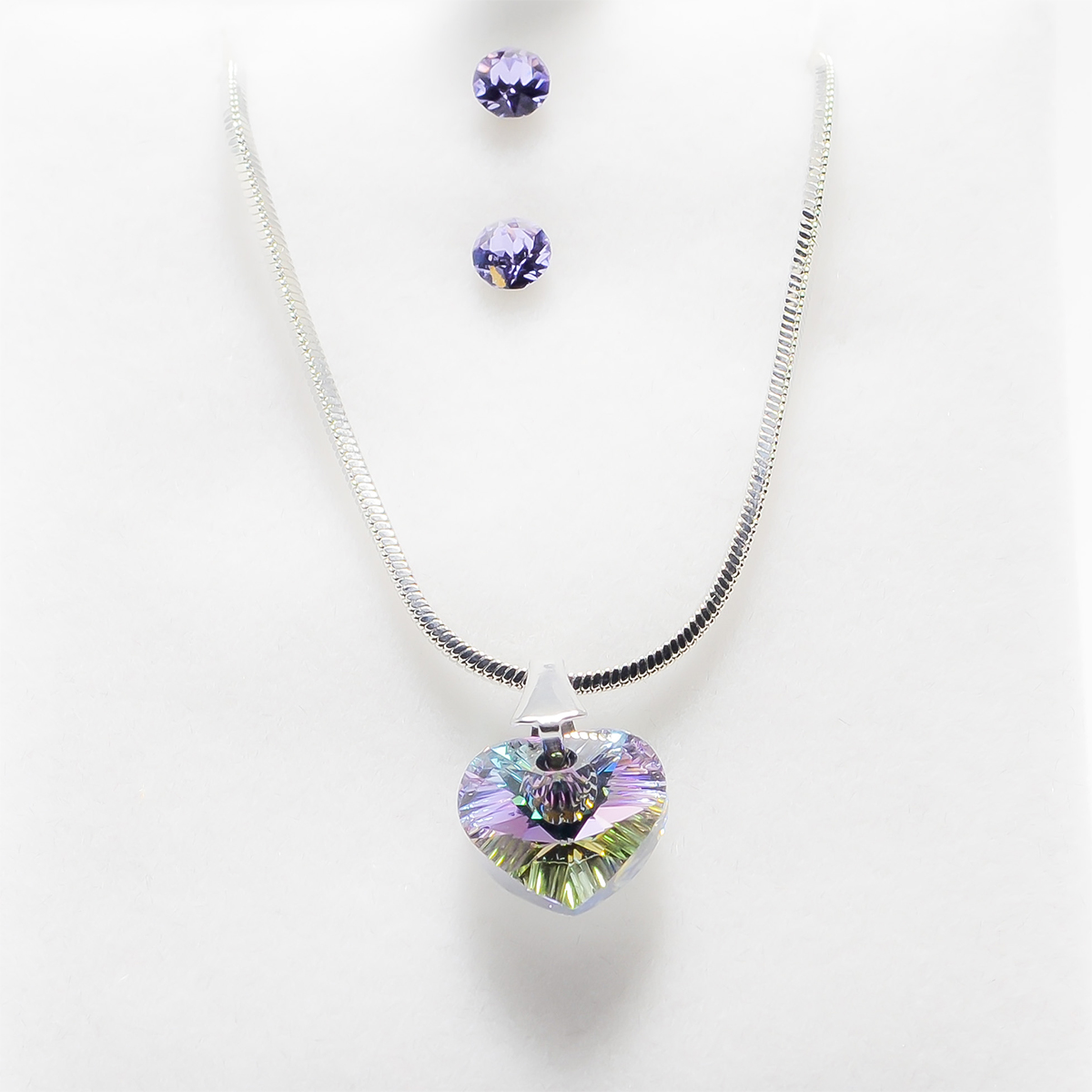 Elegáns, nemesacél medál 10 mm-es szív alakú Swarovski kristállyal és 1 pár 4 mm-es fülbevalóval.
