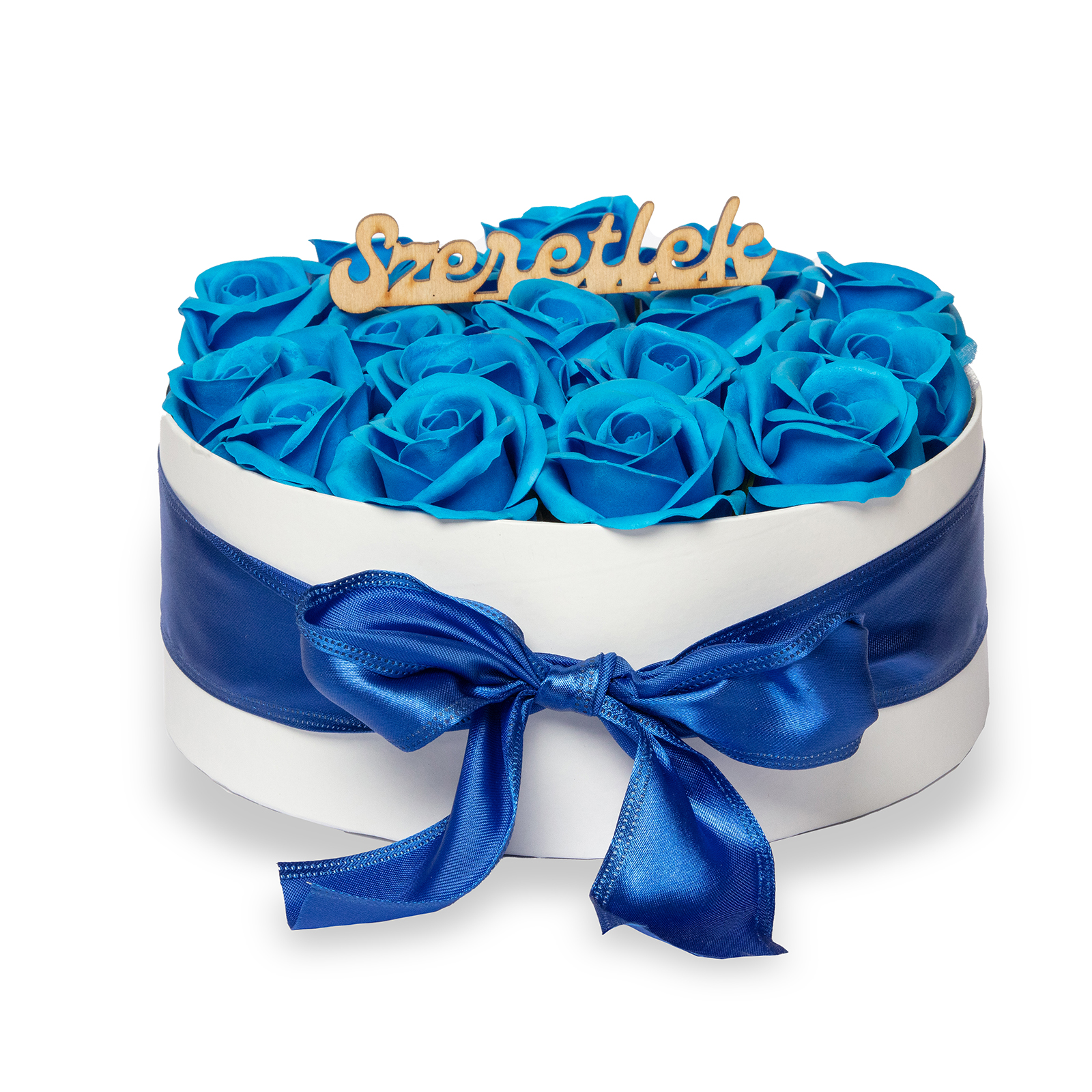 Szappanrózsa box, fehér rózsadoboz - kék - L