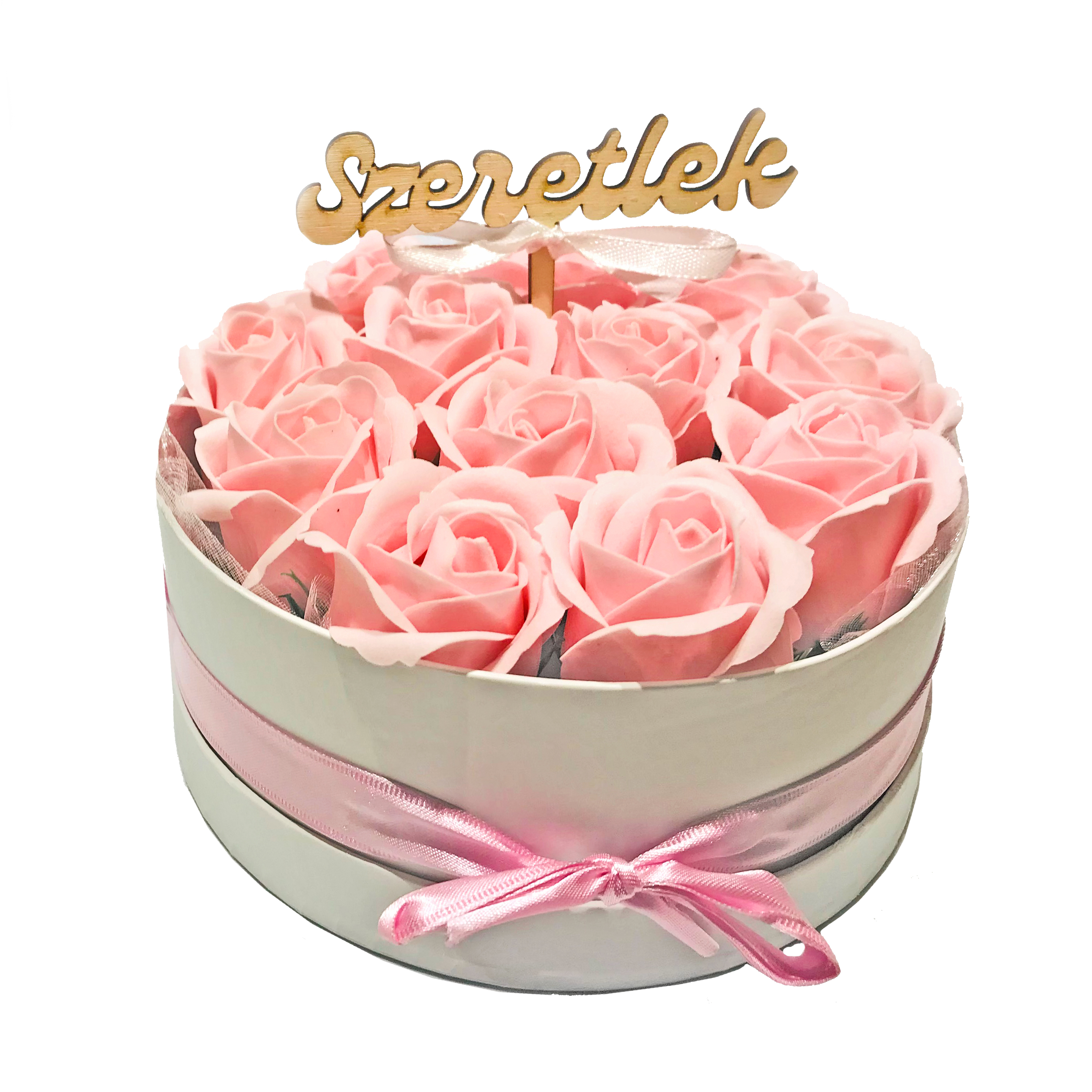 Szappanrózsa box, fehér rózsadoboz - rózsaszín - S
