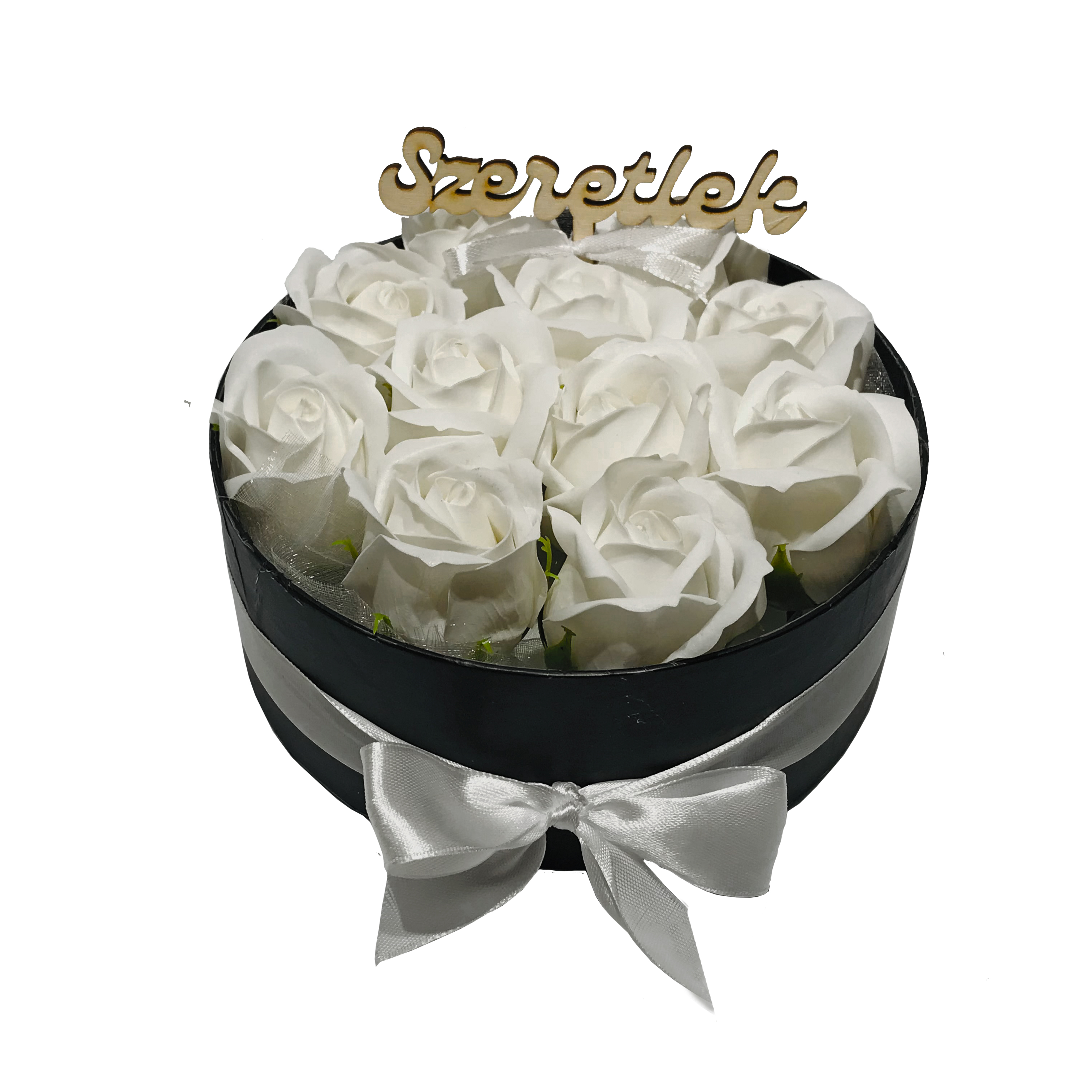 Szappanrózsa box, fekete rózsadoboz - fehér - S