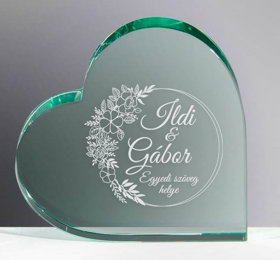 Modern és látványos üvegdíj, aminek a felületére feliratokat és emblémákat is tudunk gravírozni. Írja be az egyedi szöveg mezőbe a neveket és a kívánt szöveget. Anyaga: üvegkristály Méretei: átmérő: 120mm, magasság: 18cm Vastagsága az üvegnek: 18mm Díszdobozban adjuk